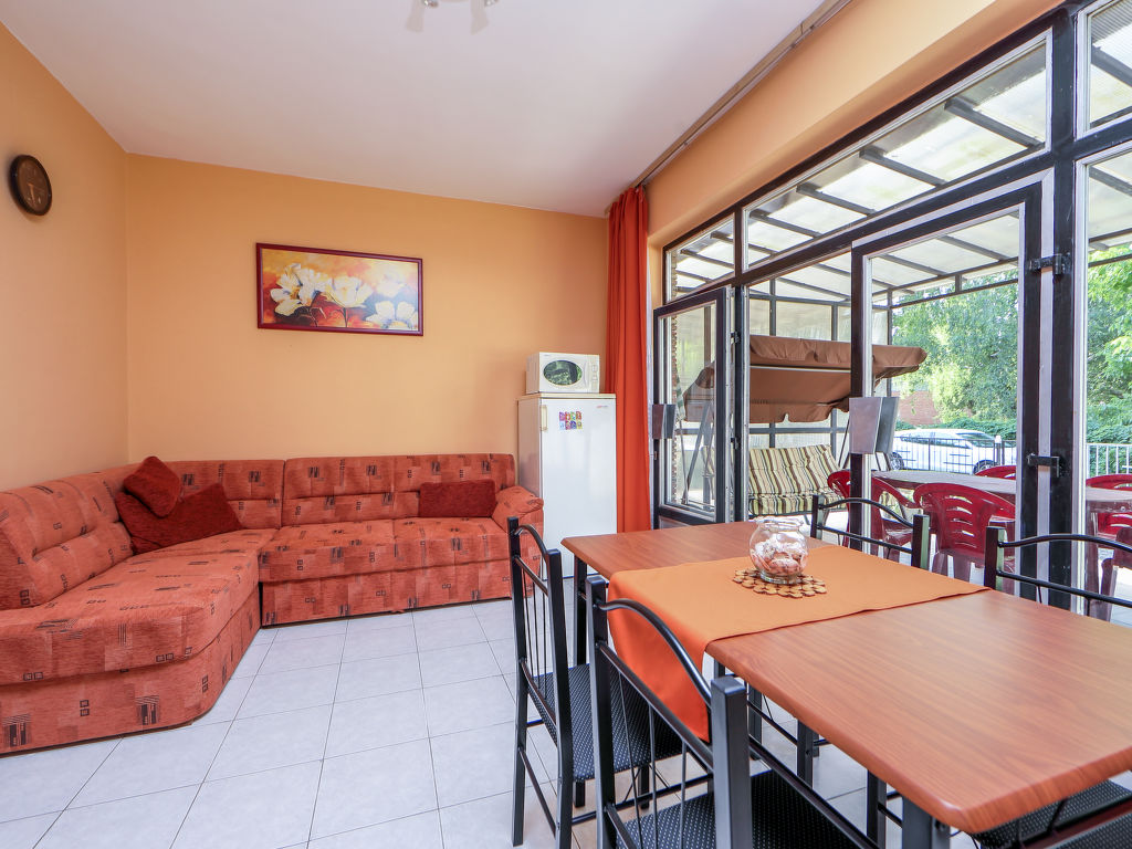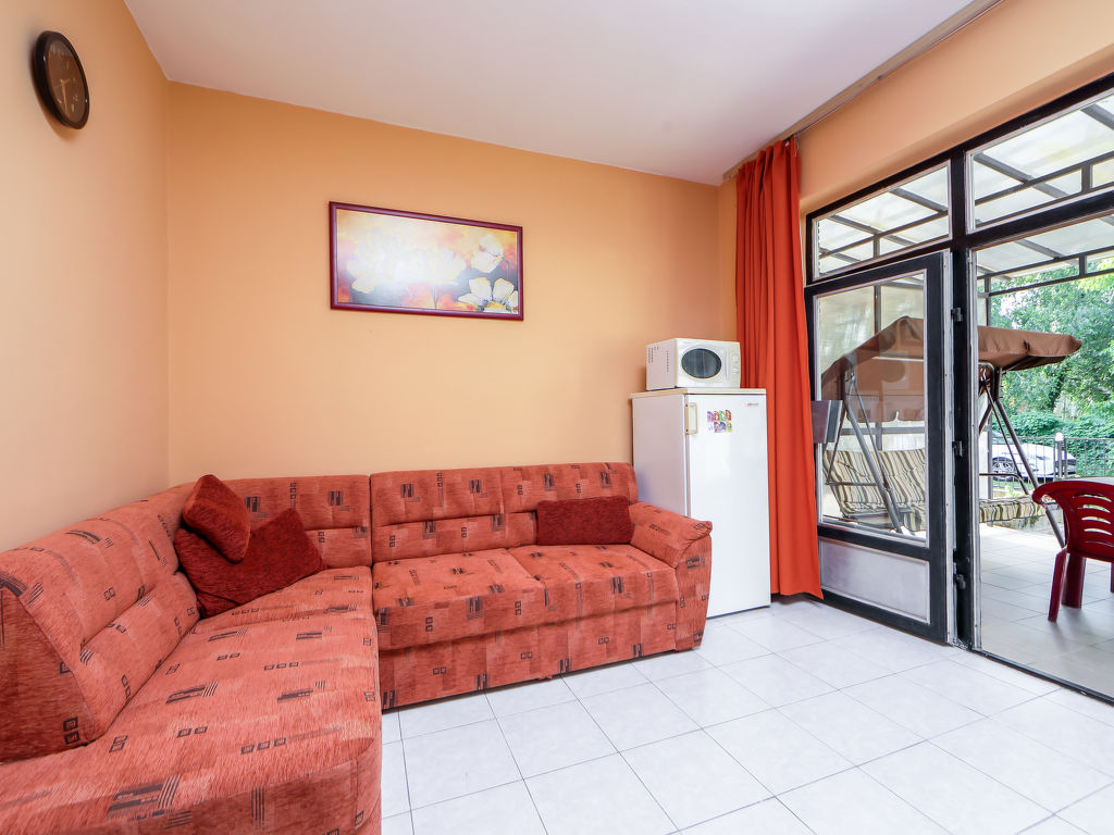 "Petunia 1", 4-Zimmer-Doppelhaushälfte 80 m2 auf 2 Stockwerken. Zweckmässig eingerichtet: Wohn-/Esszimmer mit Esstisch und Sat-TV. Ausgang zur Terrasse. 1 Zimmer mit 1 Bett. Kleine Küche (2 Kochplatten, Mikrowelle). Dusche, sep. WC. Obergeschoss: 2 Zimmer, jedes Zimmer mit 2 Betten. Grosse Terrasse. Terrassenmöbel, Gartengrill (mobil). Zur Verfügung: Babybett bis 3 Jahre. Parkplatz (eingezäunt, 2 Autos). MA20006520