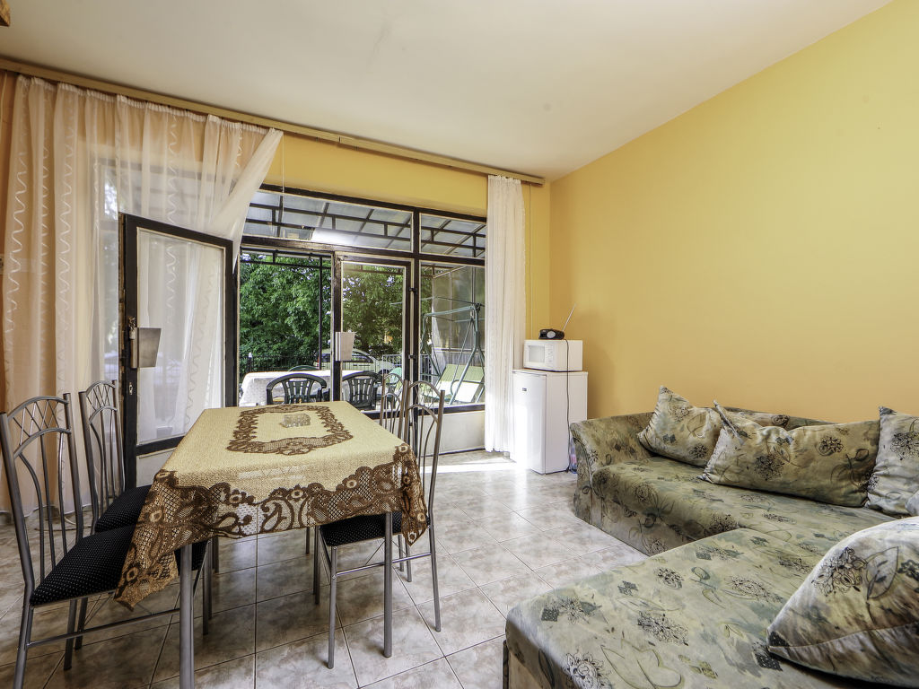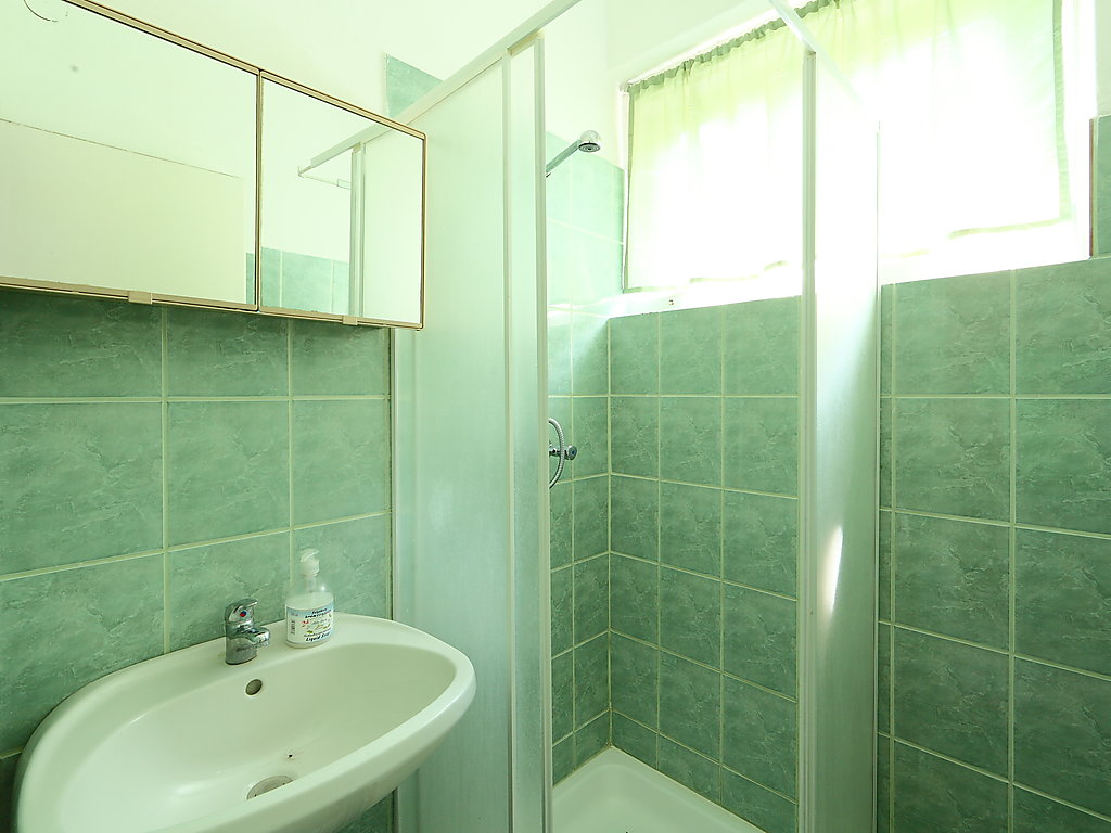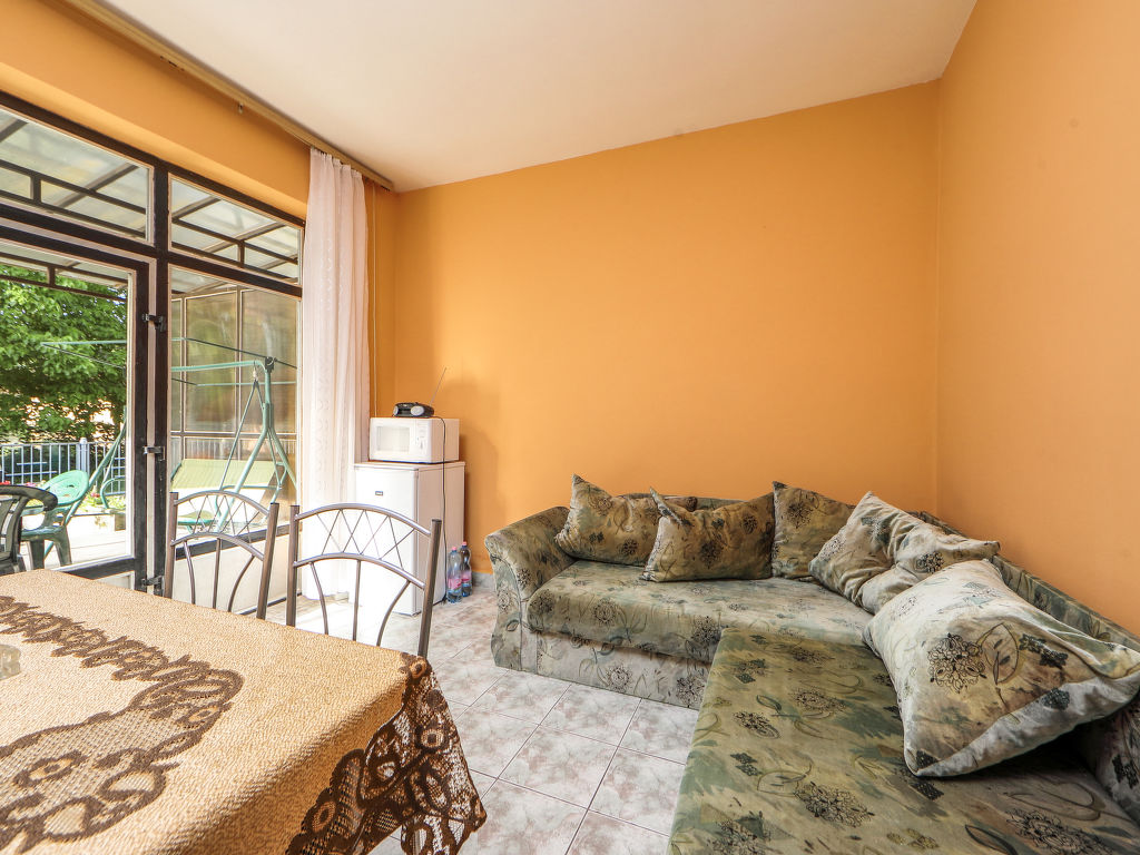 "Petunia 2", 4-Zimmer-Doppelhaushälfte 80 m2 auf 2 Stockwerken. Zweckmässig eingerichtet: Wohn-/Esszimmer mit Esstisch und Sat-TV. Ausgang zur Terrasse. 1 Zimmer mit 1 Bett. Kleine Küche (2 Kochplatten, Mikrowelle). Dusche, sep. WC. Obergeschoss: 2 Zimmer, jedes Zimmer mit 2 Betten. Grosse Terrasse. Terrassenmöbel, Gartengrill (mobil). Zur Verfügung: Babybett bis 3 Jahre. Parkplatz (eingezäunt, 2 Autos). 1 Haustier/Hund erlaubt. MA21002501