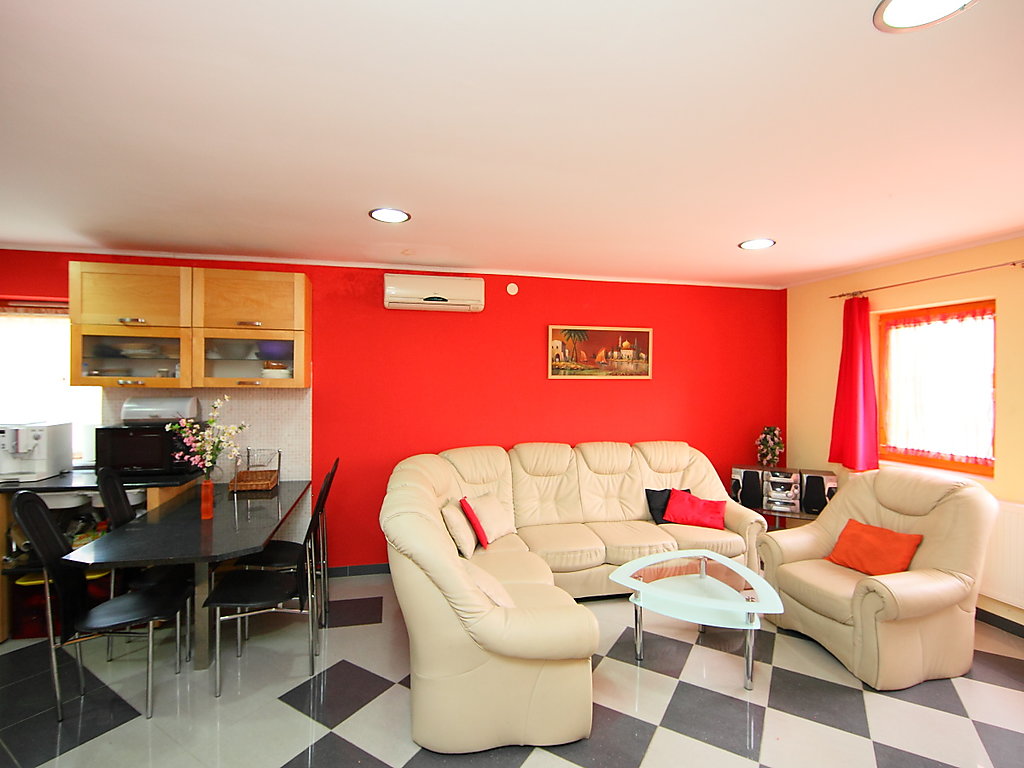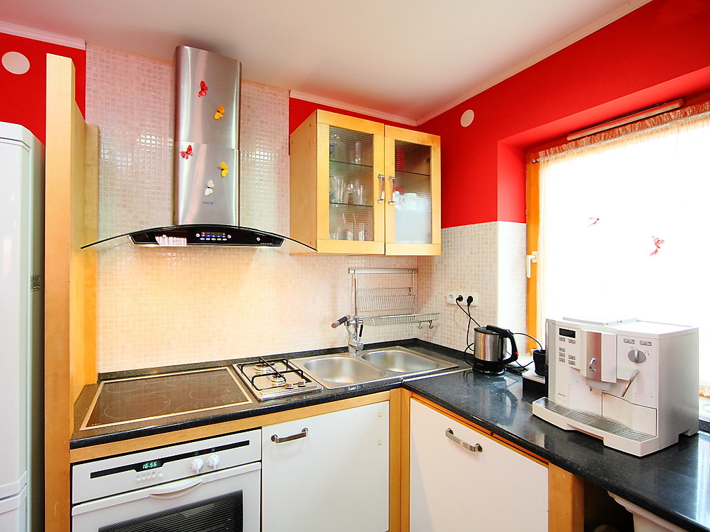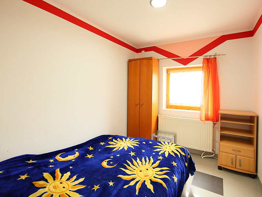 3-Zimmer-Haus 60 m2. Modern und gemütlich eingerichtet: Wohn-/Esszimmer mit Sat-TV. Ausgang zur Terrasse. 2 Zimmer, jedes Zimmer mit 1 franz. Bett. Offene Küche (4 Kochplatten, Mikrowelle, Tiefkühler, Grill). Bad, sep. WC. Grosse Terrasse 20 m2. Gartengrill (mobil), Liegestühle (5). Sicht auf die Landschaft. Parkplatz (überdacht, eingezäunt). MA19023500