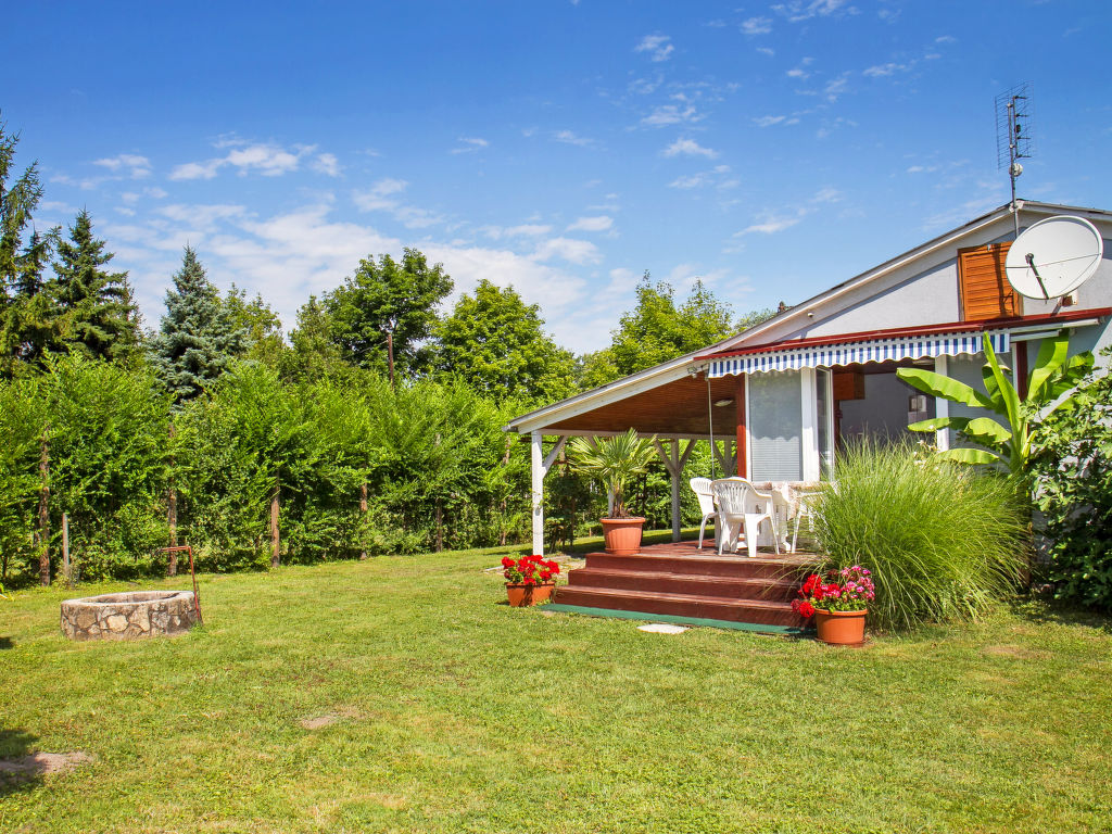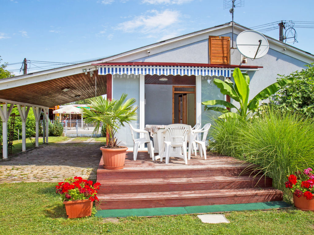 Balatonmáriafürdő: Kleines, gemütliches Haus "Azzurro". Im Ort, 50 m vom See. Zur Alleinbenutzung: Garten (eingezäunt), Liegewiese. Aussendusche, Feuerstelle. Im Hause: Wireless LAN, Klimaanlage, Waschmaschine. Lebensmittelgeschäft, Restaurant, Grasstrand 50 m.