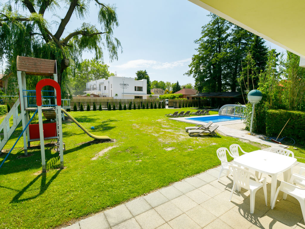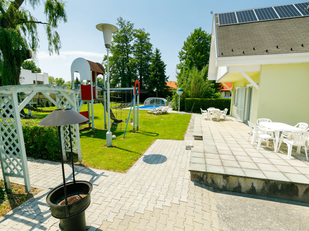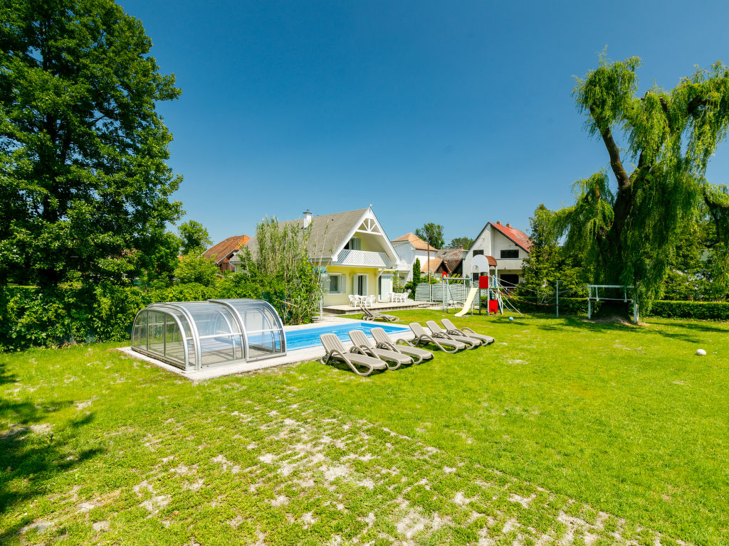 Balatonmáriafürdő: Kinderfreundliches, schönes Zweifamilienhaus "Sapphire", auf 2 Stockwerken. Im Ort, 100 m vom Zentrum, 150 m vom See. Zur Alleinbenutzung: Grundstück 1'200 m2 (eingezäunt), Garten mit Rasen und Blumen, Schwimmbad eckig (3 x 2 m, 150 cm tief, 15.05.-15.09.). Kinderspielplatz. Im Hause: Wireless LAN (alles inkl.), Klimaanlage (extra). Lebensmittelgeschäft 200 m, Restaurant 80 m, Grasstrand 150 m.