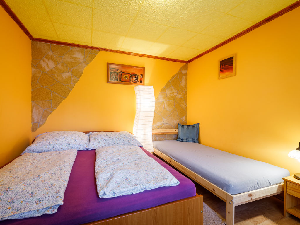 4-Zimmer-Haus 80 m2. Teilweise renoviert im Jahre 2020, komfortabel eingerichtet: Wohnzimmer mit Sat-TV und Kabel-TV. Ausgang zur Terrasse. 1 Zimmer mit 1 Bett (80 cm, Länge 200 cm). 1 Zimmer mit 1 Doppelbett (180 cm, Länge 200 cm). 1 Zimmer mit 1 Ausziehbett (2 Pers.). Offene Küche (4 Kochplatten, Backofen, Mikrowelle). Dusche/WC, sep. WC. Terrasse 12 m2. Terrassenmöbel, Gartengrill, Liegestühle (2). Parkplatz (überdacht). 1 Haustier/Hund erlaubt. MA19006078