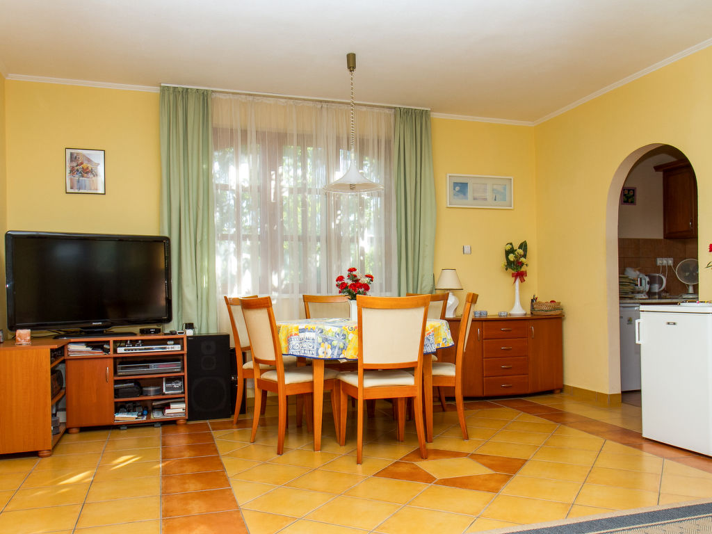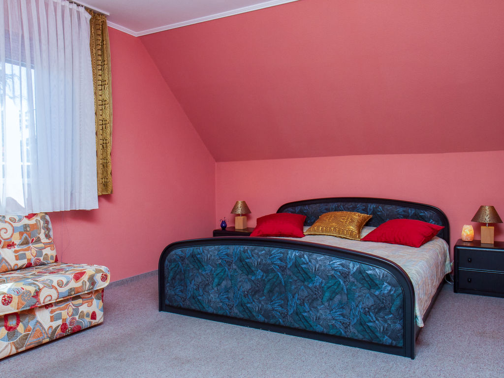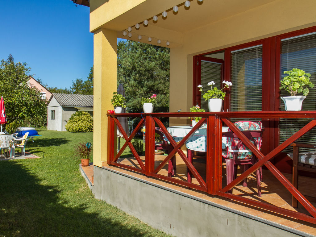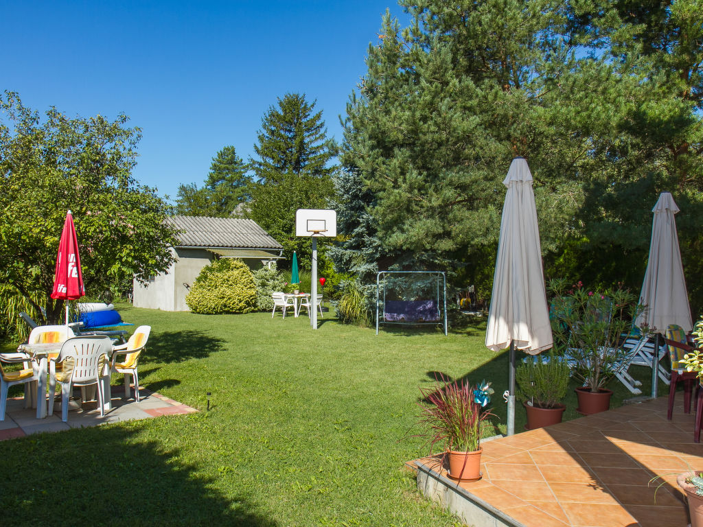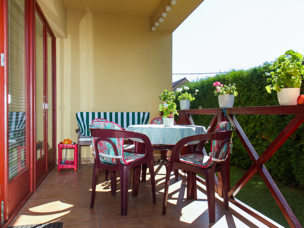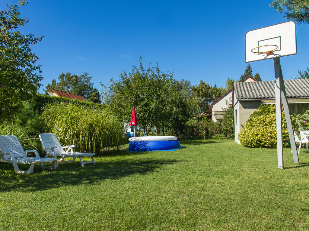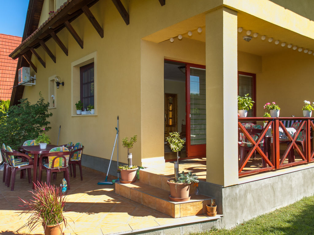 Balatonkeresztúr: Gemütliches Einfamilienhaus "Maggio", auf 2 Stockwerken. Im Ort, ruhige Lage, 800 m vom See. Zur Alleinbenutzung: schöner, gepflegter Garten 600 m2 (eingezäunt), Liegewiese, Aufstellpool (15.05.-15.09.). Basketball. Im Hause: Klimaanlage (extra). Lebensmittelgeschäft 800 m, Restaurant 150 m, Grasstrand 800 m.