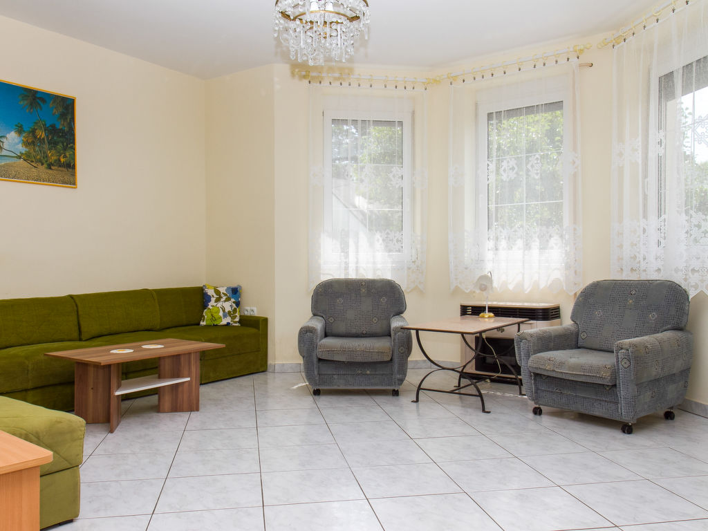 Balatonmáriafürdő: Gemütliches Einfamilienhaus "Leon", auf 2 Stockwerken. Im Ort, ruhige, sonnige Lage, 150 m vom See. Zur Alleinbenutzung: Grundstück 700 m2, Garten (eingezäunt), Liegewiese. Lebensmittelgeschäft 1.3 km, Restaurant 300 m, Grasstrand 150 m.
