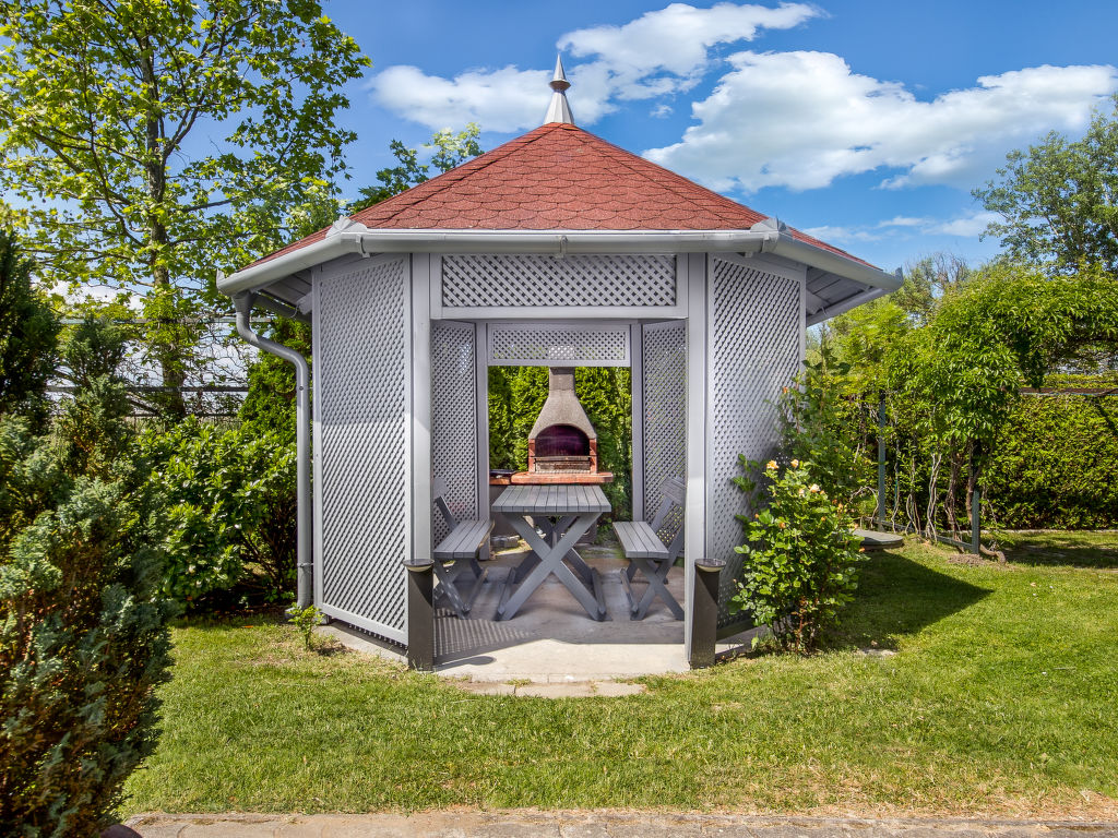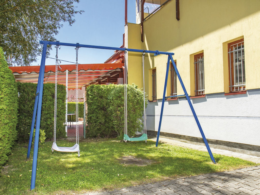 Balatonmáriafürdő: Modernes, gemütliches Appartementhaus. Sonnige Lage, 70 m vom See. Zur Mitbenutzung: gepflegter Garten 500 m2 (eingezäunt), Liegewiese, Schwimmbad eckig (7 x 4 m, 120 cm tief, saisonale Verfügbarkeit: 01.Mai.-01.Okt.) mit Innentreppe und Rollladenabdeckung. Tischtennis, Sitzplatz, Gartenmöbel, Grill (Schaukel). Im Hause: Klimaanlage (extra). Lebensmittelgeschäft 1 km, Restaurant 180 m, Grasstrand 70 m. Bitte beachten: In diesem Haus sind weitere Ferienwohnungen mietbar.