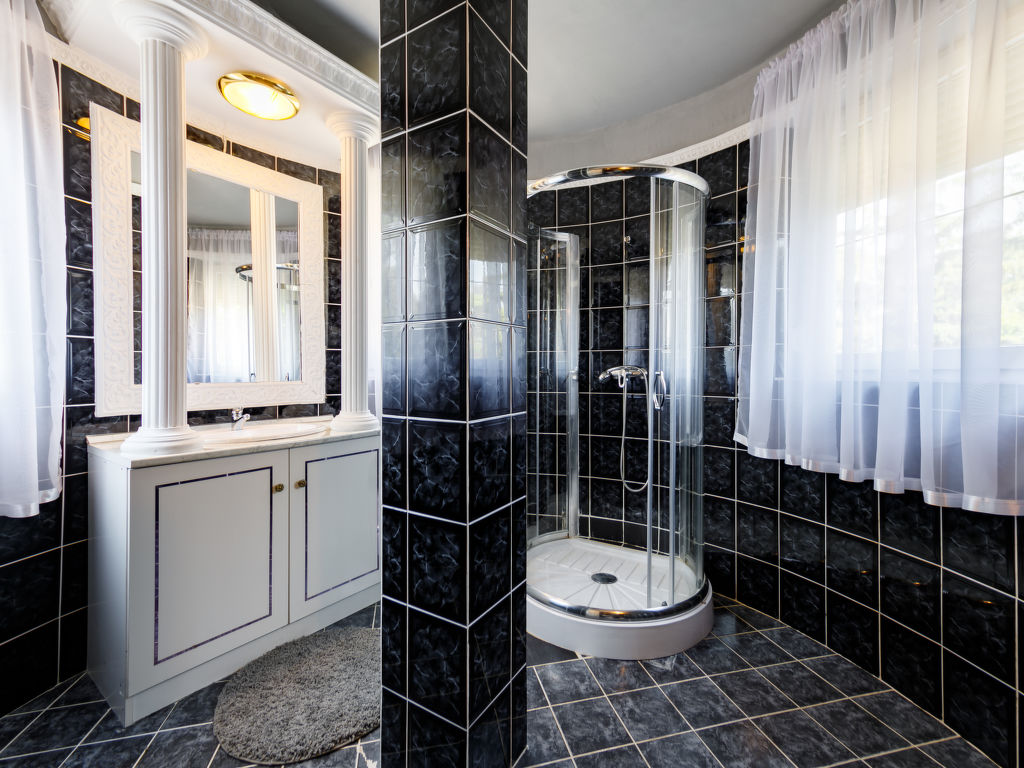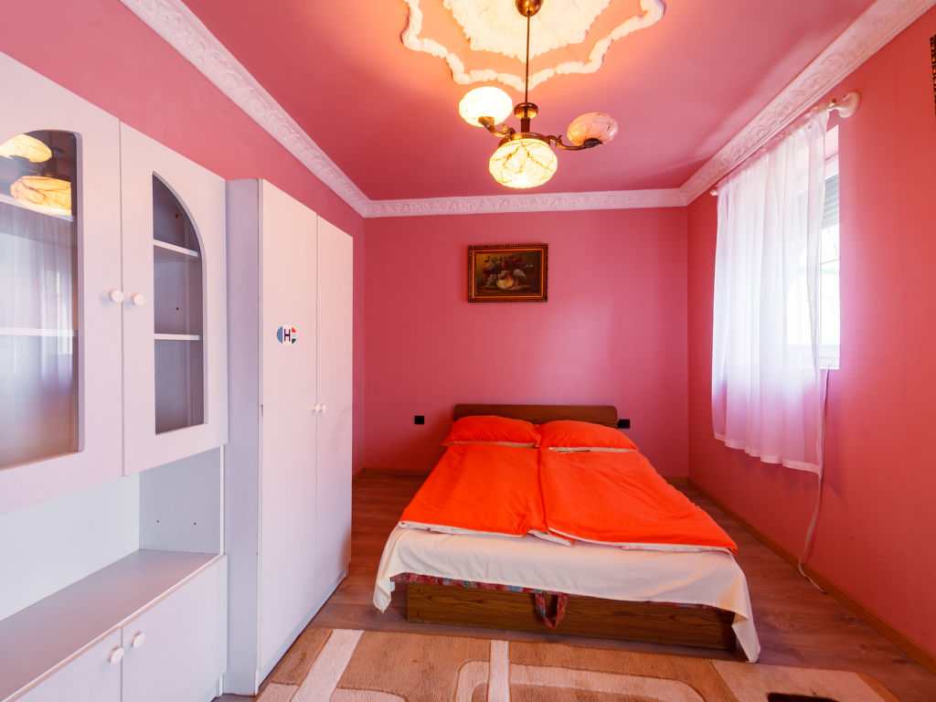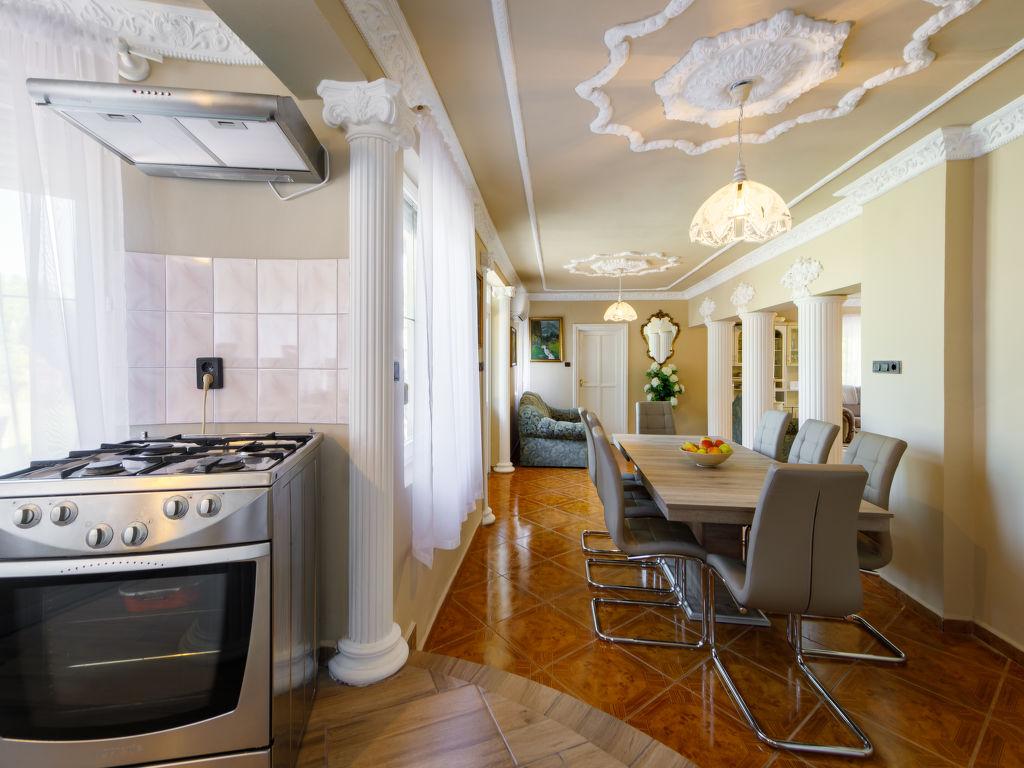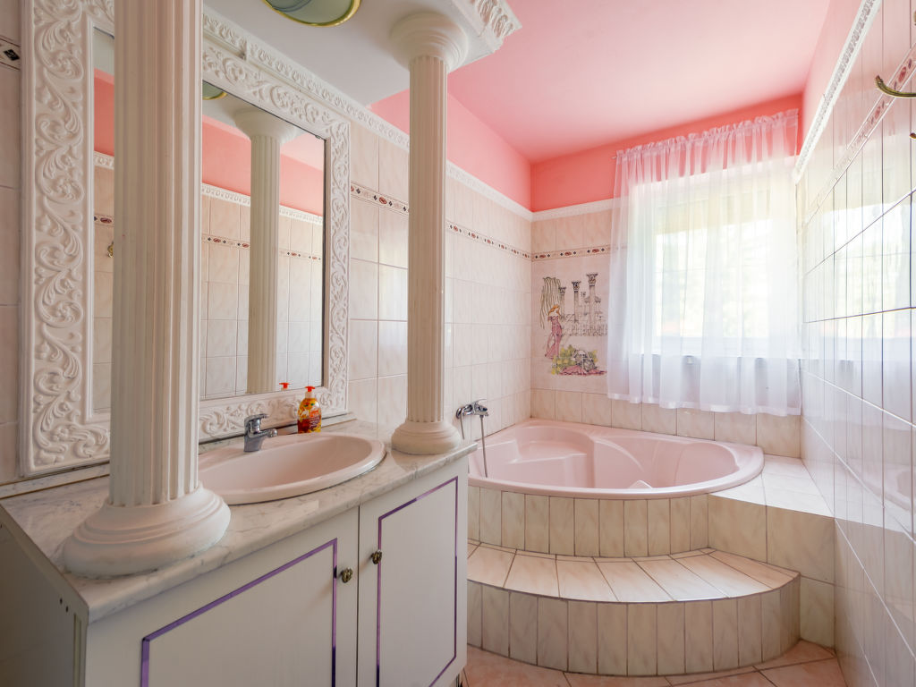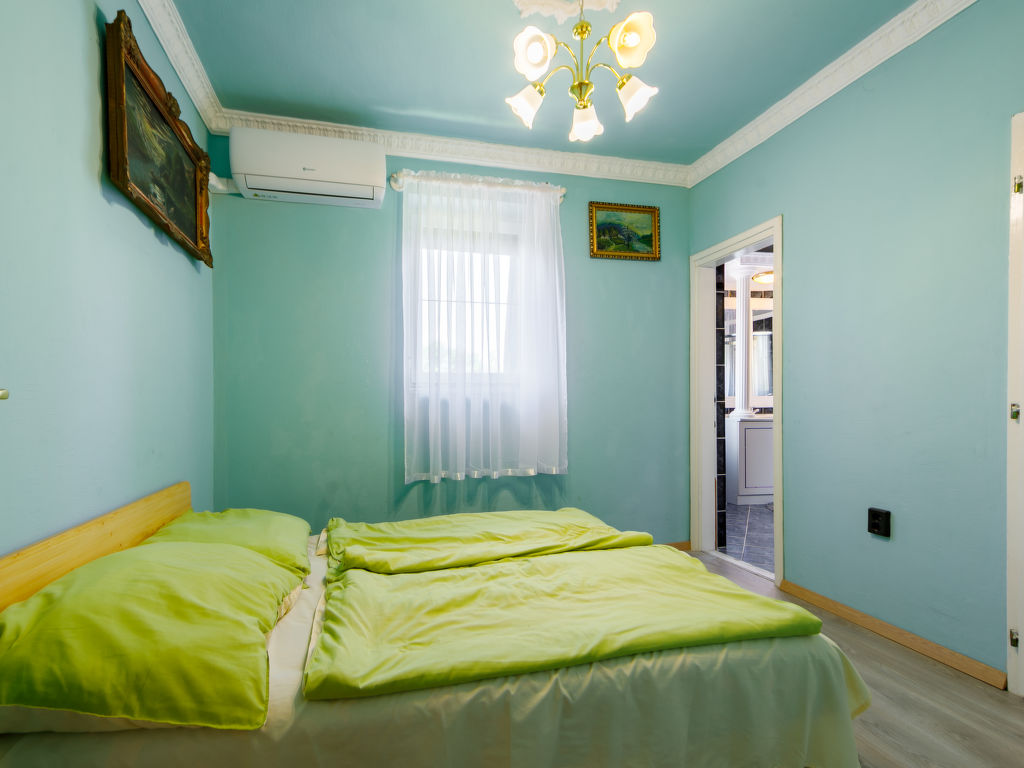 Balatonföldvár: Gemütliche Villa "Big Thuja", auf 2 Stockwerken, renoviert im Jahre 2021. Im Ort, zentrale Lage, 400 m vom See. Zur Alleinbenutzung: Grundstück (eingezäunt), Garten 600 m2 mit Rasen und Bäumen, Liegewiese. Sitzplatz, Grill. Im Hause: Wireless LAN, Klimaanlage. Supermarkt, Restaurant, Grasstrand 500 m. Sporthafen 600 m.