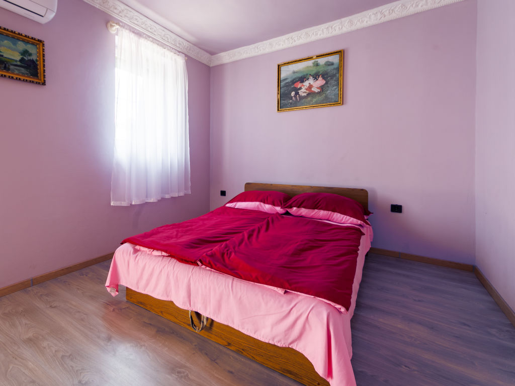 6-Zimmer-Villa 200 m2. Komfortabel eingerichtet: grosses Wohn-/Esszimmer mit Bar, Kabel-TV und Klimaanlage. Ausgang zur Terrasse. 1 Zimmer mit 1 franz. Bett und Klimaanlage. Offene Küche (4 Kochplatten, Backofen, Geschirrspüler, Tiefkühler). Bad, sep. WC. Obergeschoss: Eingang. 1 Zimmer mit 1 franz. Bett, Dusche/WC und Klimaanlage. 2 Zimmer, jedes Zimmer mit 2 franz. Betten und Klimaanlage. Ausgang zum Balkon. 1 Zimmer mit 1 Bett, 1 franz. Bett und Klimaanlage. Bad. Grosse Terrasse 30 m2. Terrassenmöbel, Balkonmöbel, Liegestühle. Parkplatz (eingezäunt, 3 Autos).