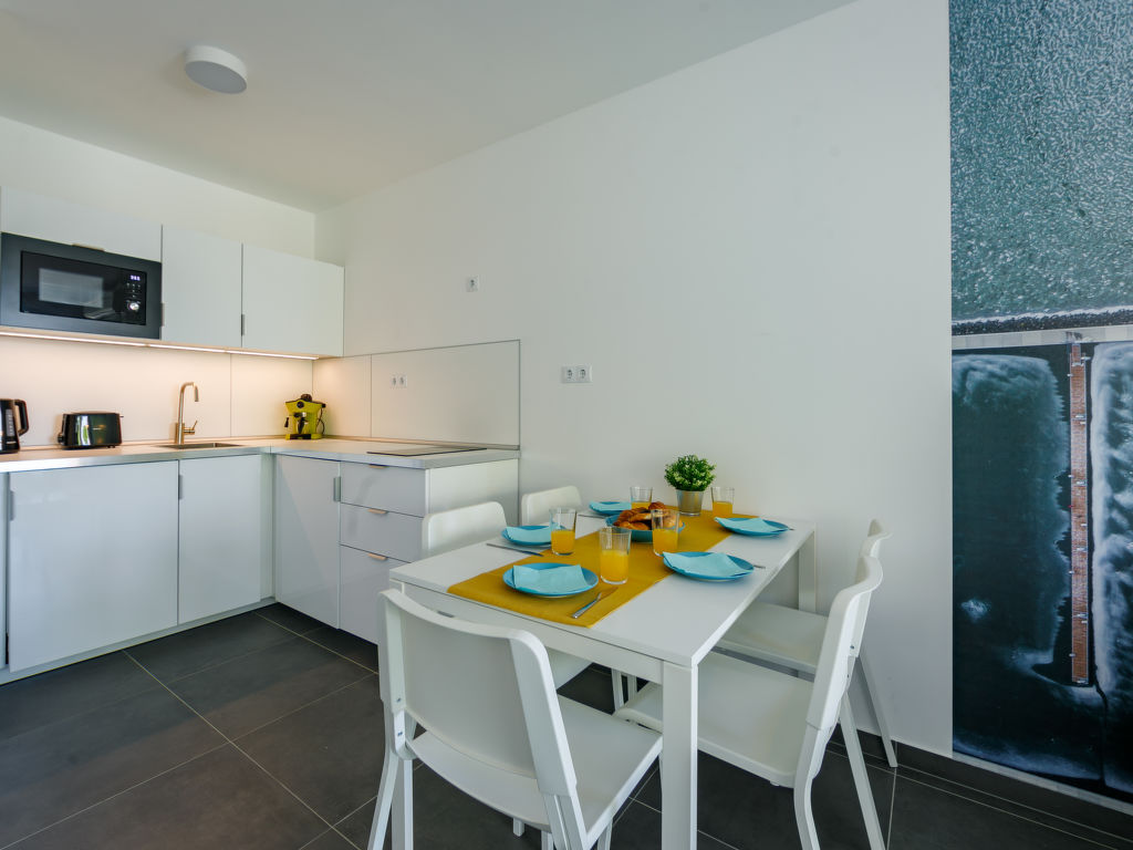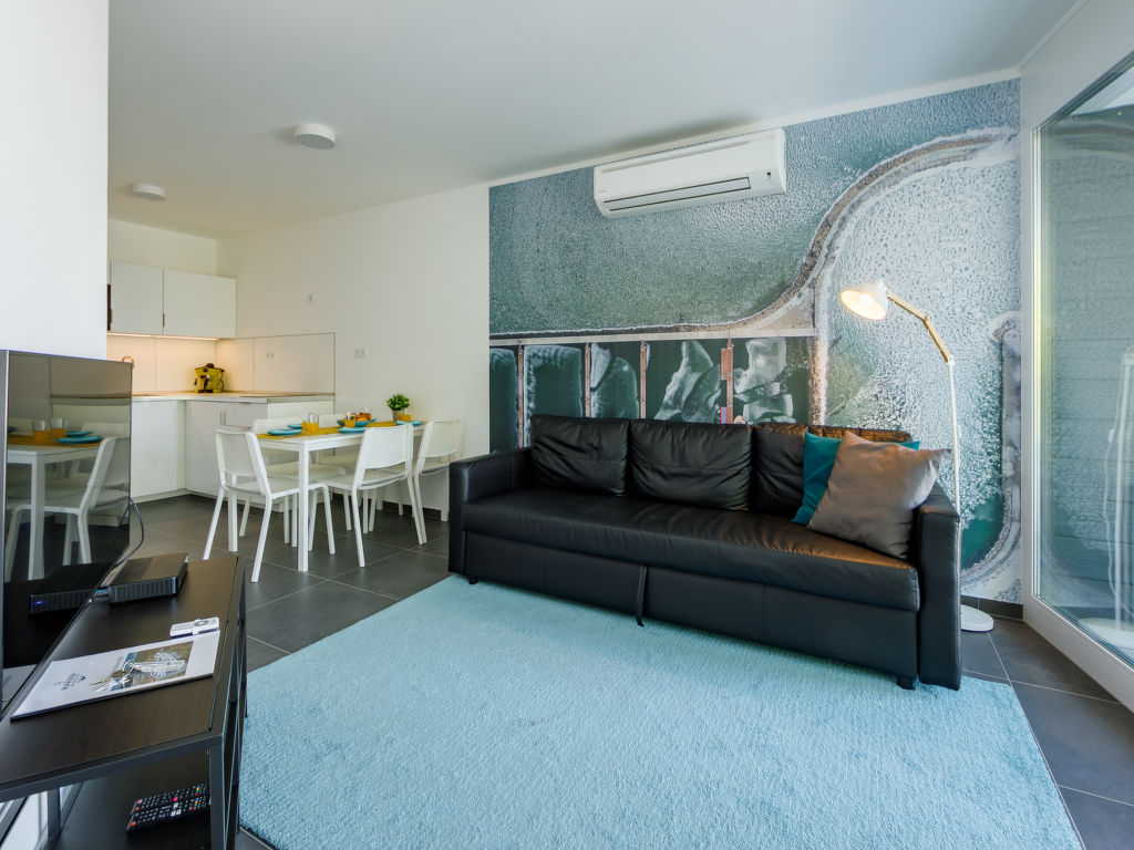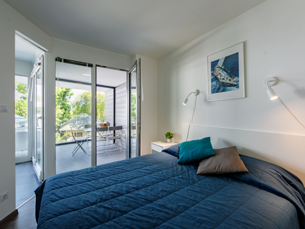"Fenyves", 3-Zimmer-Wohnung 43 m2 im 1. Stock. Modern und geschmackvoll eingerichtet: Wohn-/Schlafzimmer mit 1 Ausziehbett (2 Pers.), Kabel-TV und Klimaanlage. Ausgang zur Terrasse. 1 Zimmer mit 1 franz. Bett. 1 Zimmer mit 2 Betten. Offene Küche (Backofen, Toaster, Wasserkocher). Dusche/WC, sep. WC. Grosse Terrasse. Terrassenmöbel. Schöne, auf den See. Parkplatz (überdacht, 1 Auto). EG21000354
