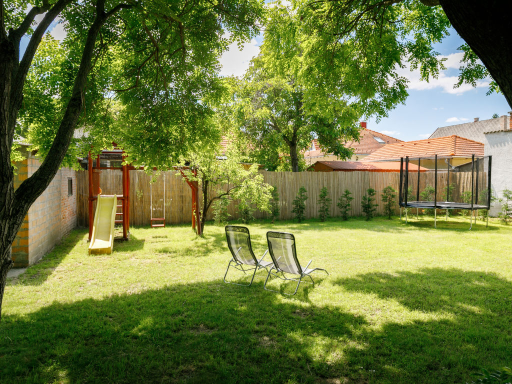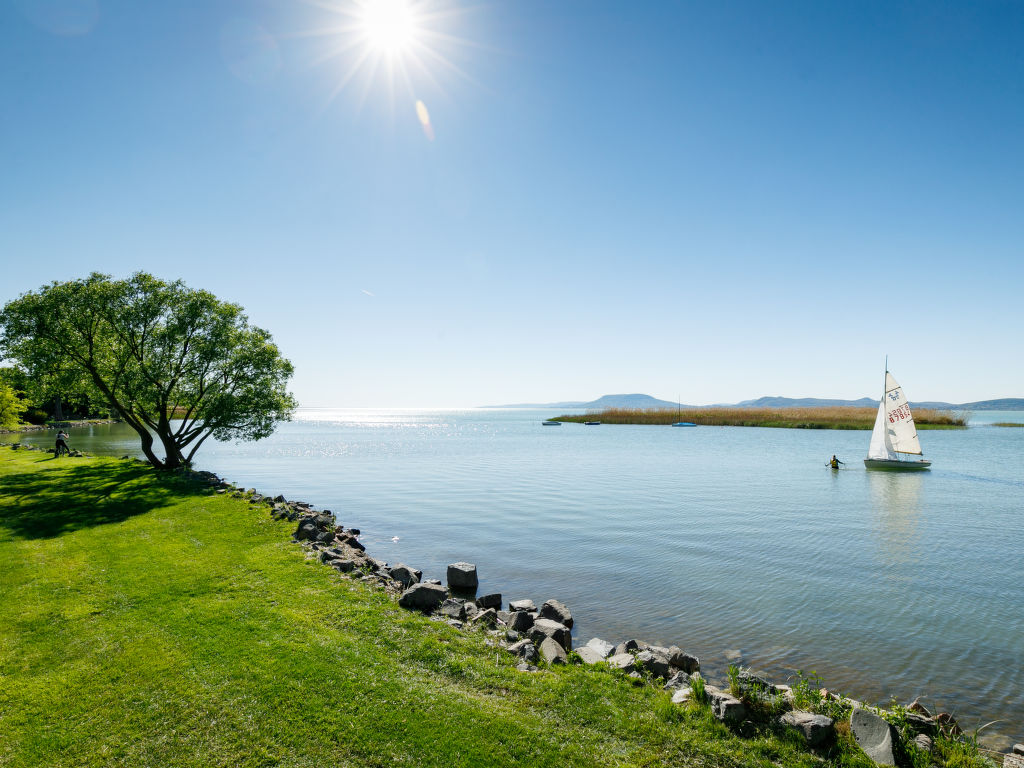 Balatonboglár: Kinderfreundliches, gemütliches Zweifamilienhaus "Marian", auf 2 Stockwerken. Im Ort, 50 m vom See. Zur Alleinbenutzung: Grundstück 700 m2 (eingezäunt), gepflegter Garten. Sitzplatz (Rutschbahn, Schaukel, Sandkasten). Im Hause: Wireless LAN, Tischfussball, Klimaanlage, Waschmaschine. Lebensmittelgeschäft 600 m, Restaurant 150 m, Bahnstation 300 m, Grasstrand 100 m. Tennis 700 m.