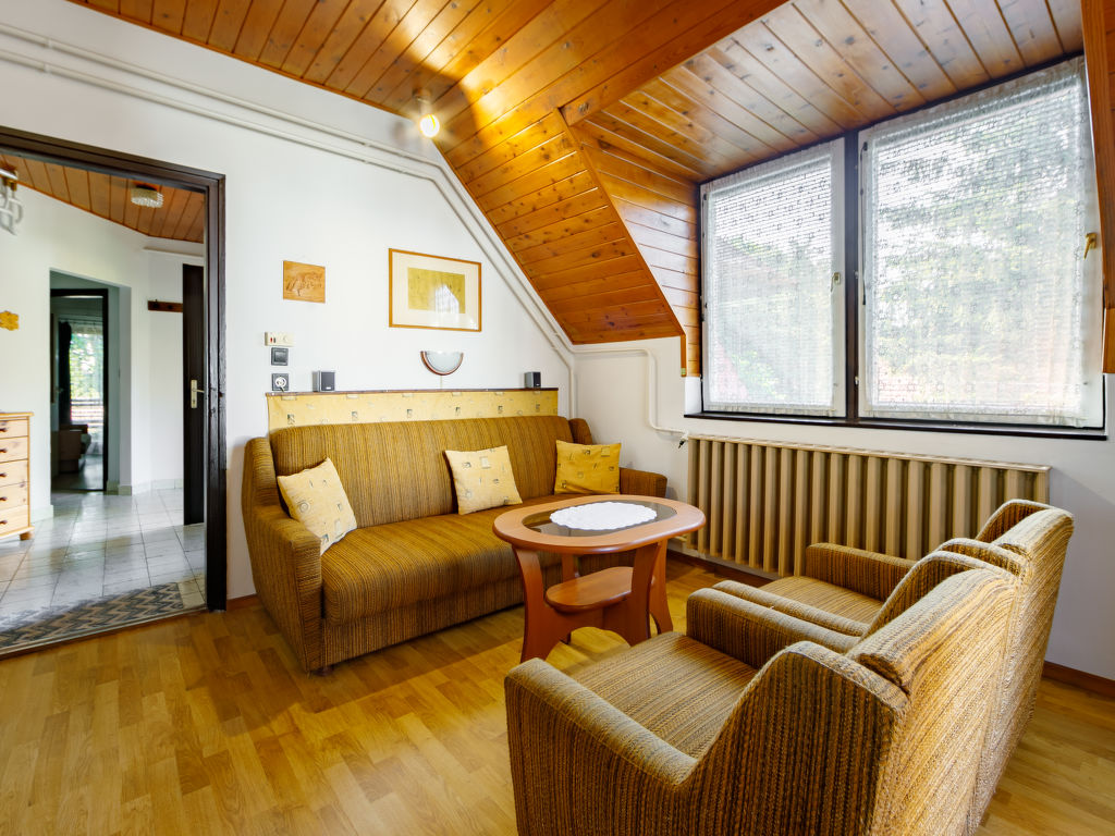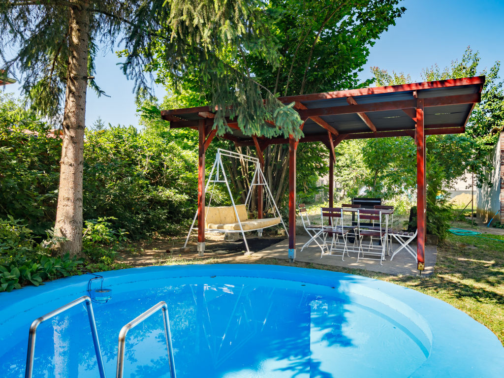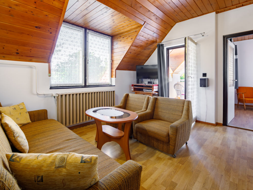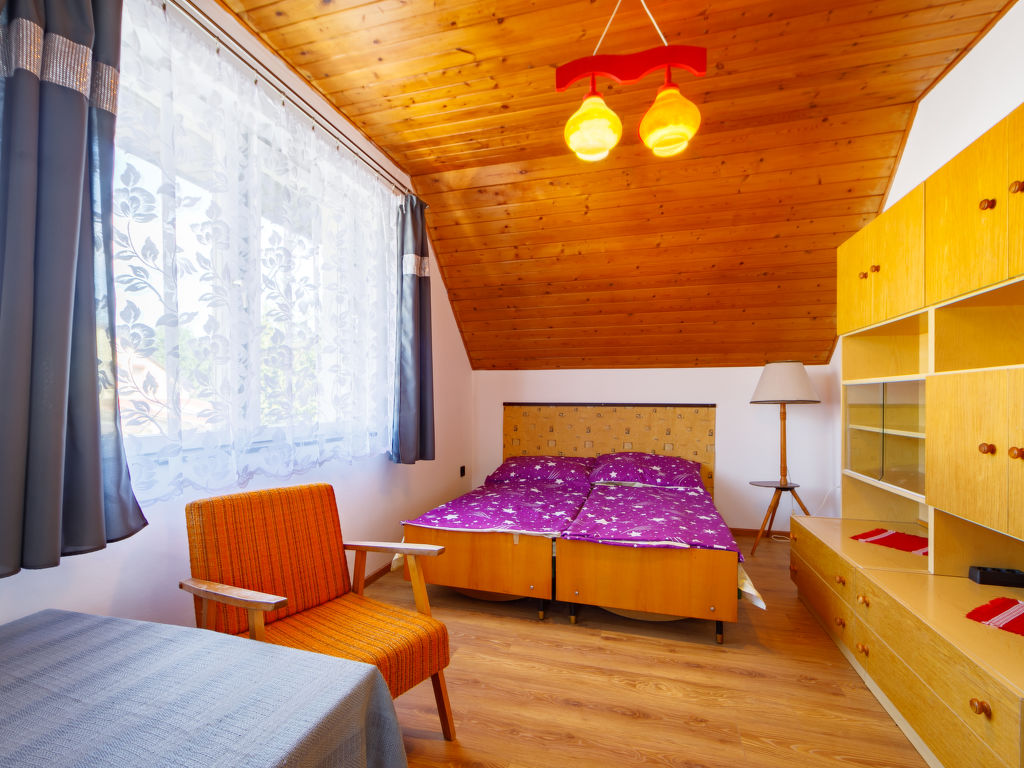 Zweifamilienhaus. Im Ort, 500 m vom Zentrum, 600 m vom See. Zur Mitbenutzung: Grundstück 500 m2 (eingezäunt), Liegewiese, Schwimmbad rund (3 m Durchmesser, 90 cm tief, saisonale Verfügbarkeit: 15.Jun.-15.Sep.). Aussendusche, Sitzplatz, Gartenmöbel, Grill. Im Hause: Waschmaschine. Lebensmittelgeschäft 400 m, Restaurant 500 m, Grasstrand 600 m.