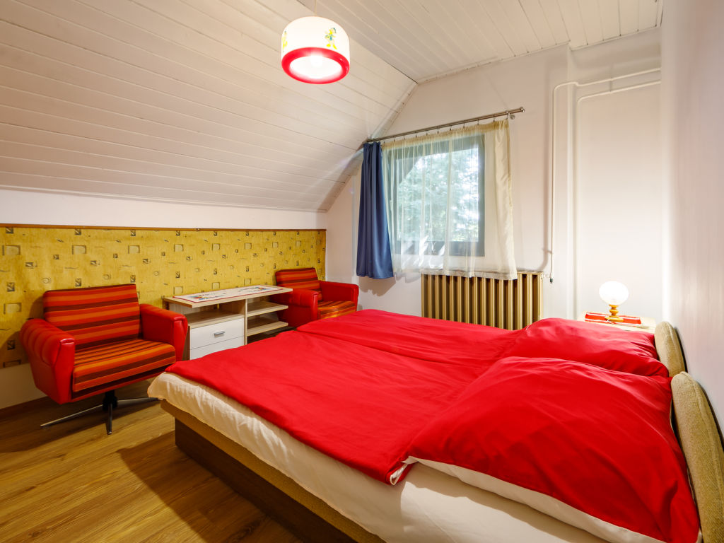"Paulownia", 4-Zimmer-Wohnung 90 m2, im Obergeschoss. Teilweise abgeschrägt, zweckmässig eingerichtet: Wohnzimmer mit Kabel-TV, CD und DVD. Ausgang zum Balkon. 1 Zimmer mit 1 Doppelbett. 1 Zimmer mit 1 franz. Bett. 1 Zimmer mit 1 Doppelbett und 1 Schlafmöglichkeit. Küche (4 Kochplatten, Backofen, Mikrowelle). Bad/Dusche/WC. Balkon. Balkonmöbel. Parkplatz (eingezäunt). 1 Haustier/Hund erlaubt. MA19007040
