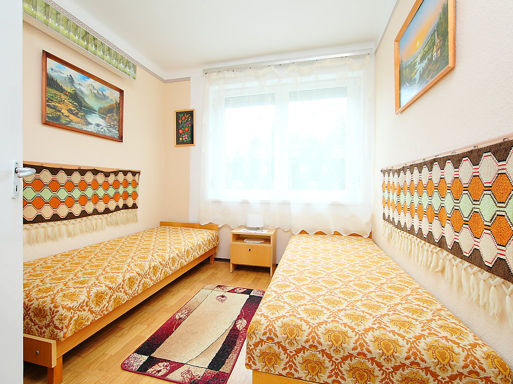 3-Zimmer-Doppelhaushälfte 50 m2. Zweckmässig eingerichtet: Wohnzimmer mit Sat-TV. Ausgang zur Terrasse. Küche (2 Kochplatten, Backofen, Mikrowelle) mit Esstisch. Bad, sep. WC. Obergeschoss: Eingang mit 1 Bett. 1 Zimmer mit 2 Betten. 1 Zimmer mit 1 franz. Bett. Ausgang zum Balkon. Balkon 6 m2, Terrasse 14 m2. Terrassenmöbel, Gartengrill (mobil), Liegestühle (2). Parkplatz (eingezäunt).