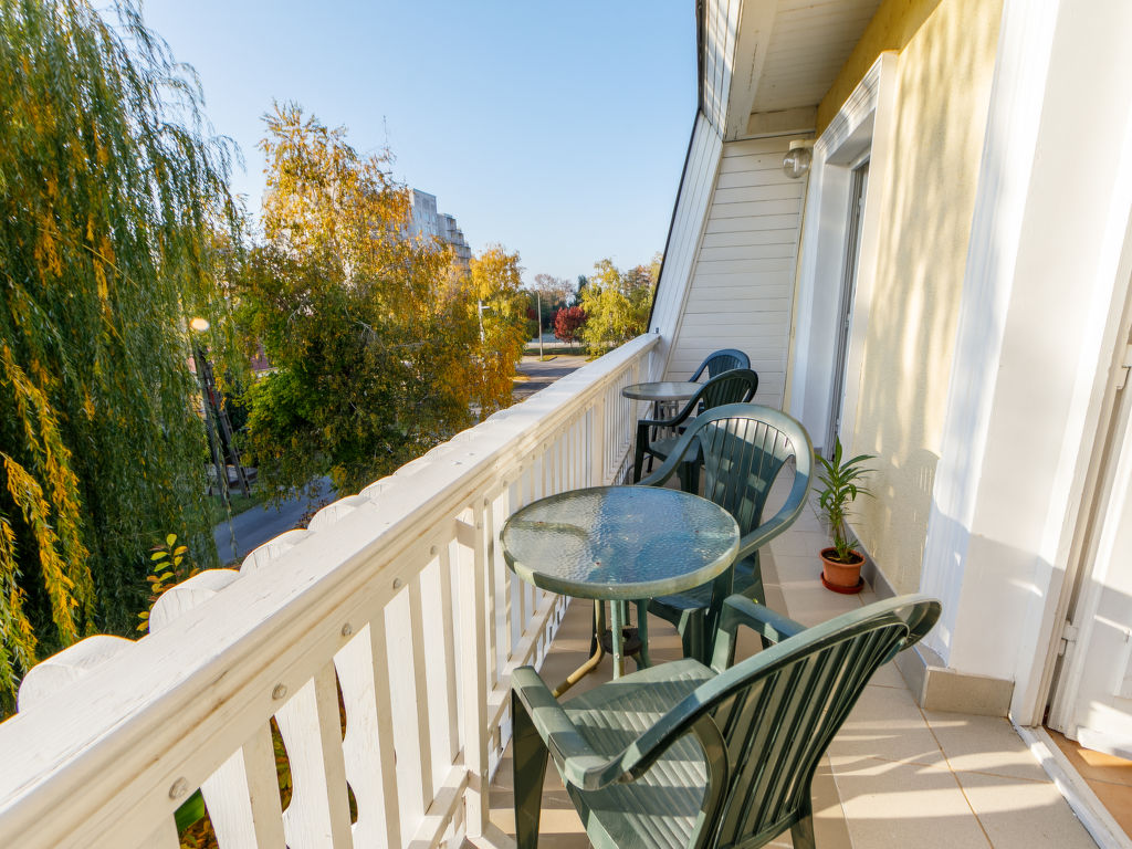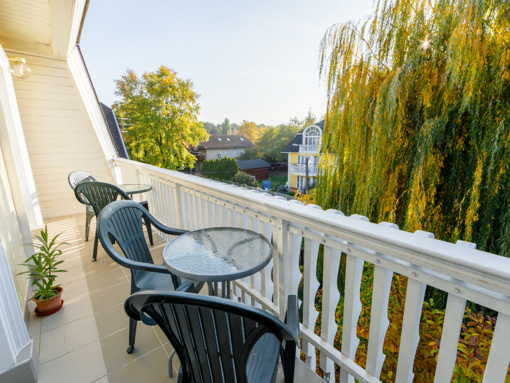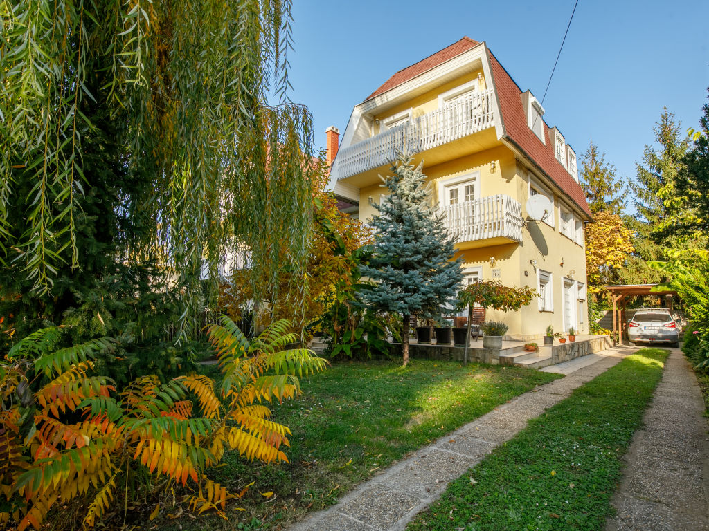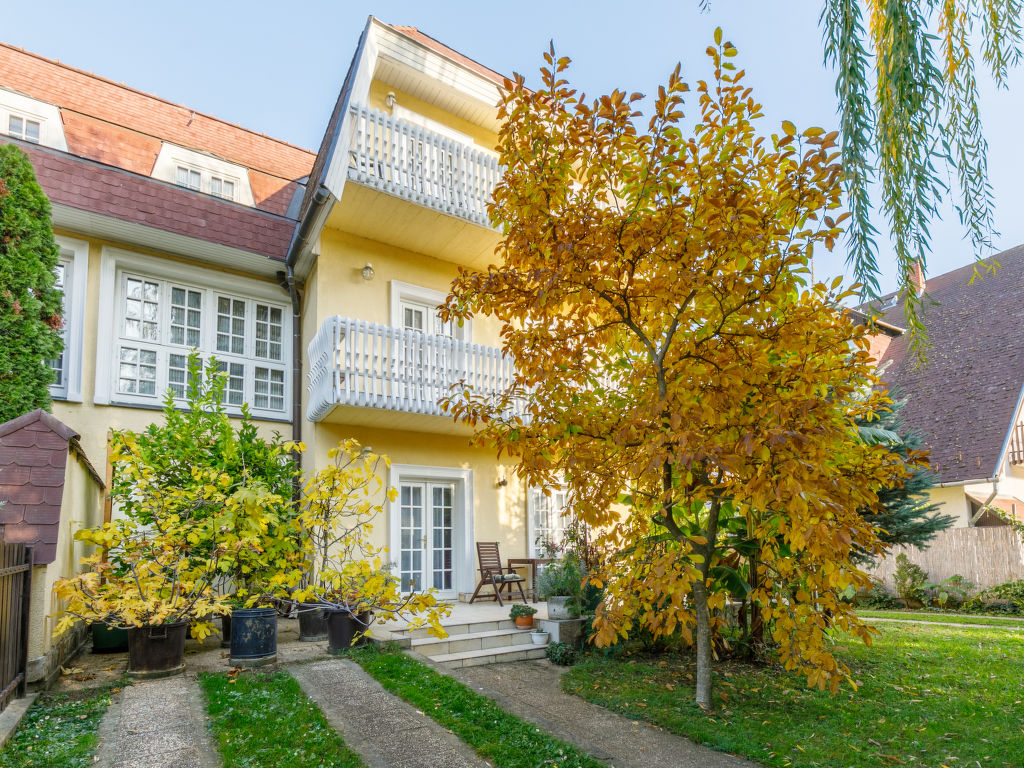 Siófok: Gemütliches Mehrfamilienhaus "Banana Tree". Zentrale Lage, 100 m vom See, 100 m vom Strand. Zur Mitbenutzung: Garten (eingezäunt) mit Blumen und Bäumen. Zur Alleinbenutzung: Terrasse (40 m2). Im Hause: Wireless LAN, Waschmaschine (extra).