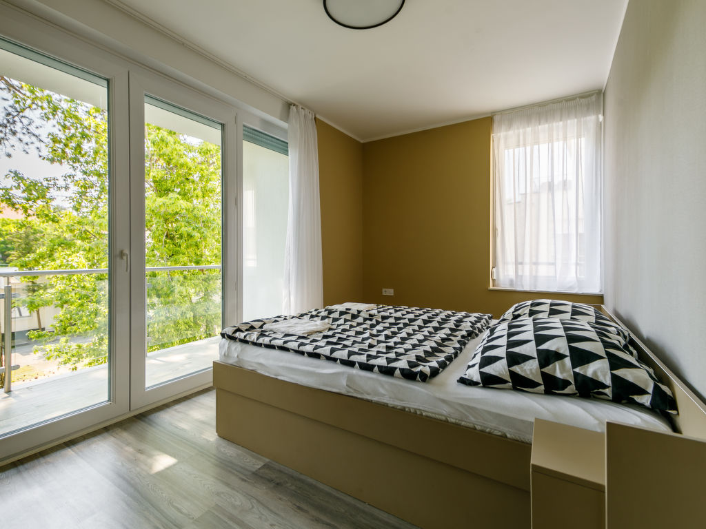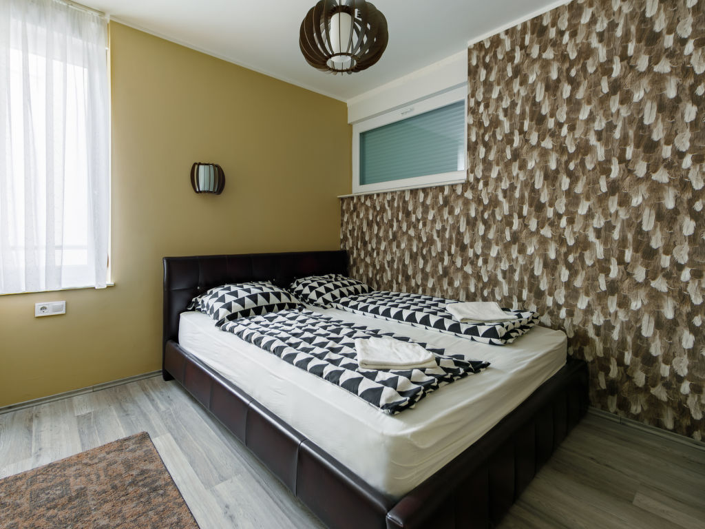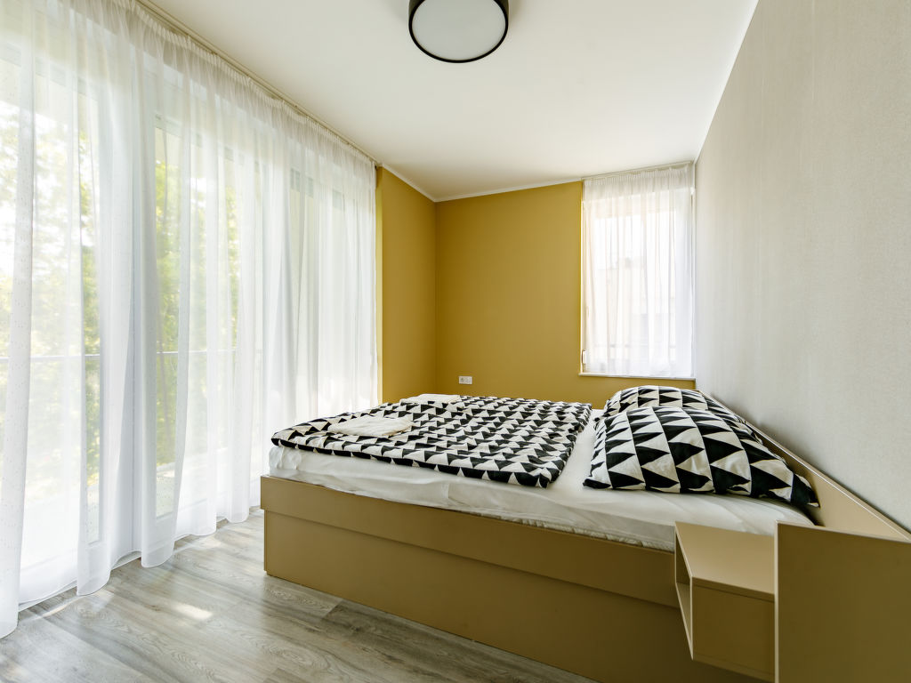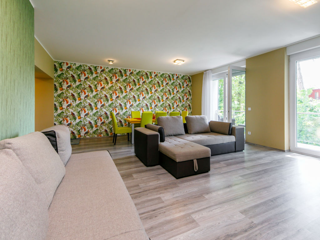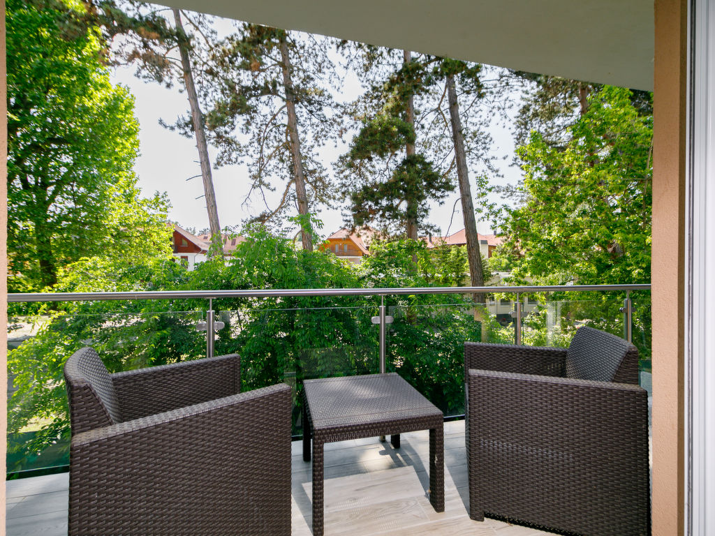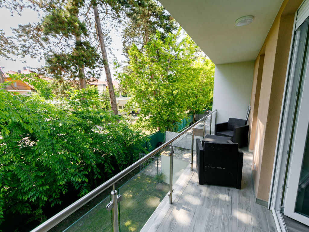 Balatonlelle: Modernes Appartementhaus. Im Herzen der Stadt, 200 m vom See. Zur Mitbenutzung: Garten, Schwimmbad eckig (8 x 4 m, 32 m2, saisonale Verfügbarkeit: 01.Mai.-01.Okt.). Aussendusche. Im Hause: Internetcafé, Klimaanlage. Supermarkt 150 m, Restaurant 100 m, Bäckerei, Fußgängerzone 50 m, Zentrum zu Fuss in 5 Minuten erreichbar, Bahnstation 100 m, Grasstrand 200 m. Radweg 100 m. Bitte beachten: Ferienwohnung Ref. HU8638.250.1 befindet sich auf dem gleichen Grundstück.