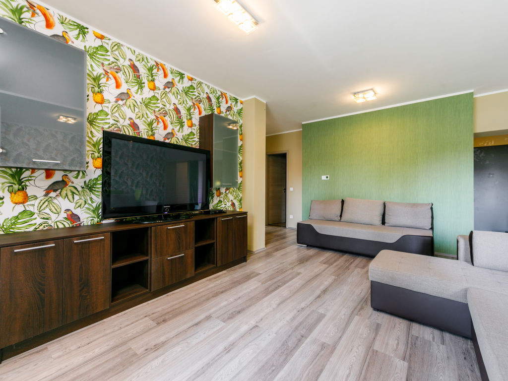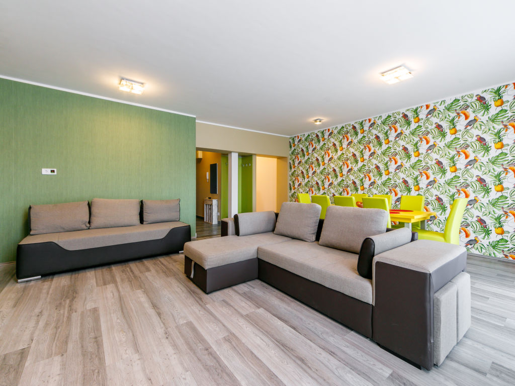 "Riviera", 4-Zimmer-Wohnung. Komfortabel und modern eingerichtet: Wohnzimmer mit 1 Ausziehbett (2 Pers.), Kabel-TV. Ausgang zum Balkon. 1 Zimmer mit 1 franz. Bett (160 cm, Länge 200 cm). Ausgang zum Balkon. 1 Zimmer mit 1 franz. Bett (160 cm, Länge 200 cm). 1 Zimmer mit 1 franz. Bett (180 cm, Länge 200 cm). Offene Küche (2 Kochplatten, Mikrowelle, elektrische Kaffeemaschine, Kapseln für die Kaffeemaschine (Martello)). Bad, Dusche/WC, sep. WC. Balkonmöbel. Parkplatz. EG200170019