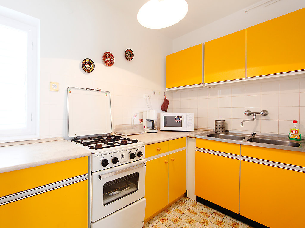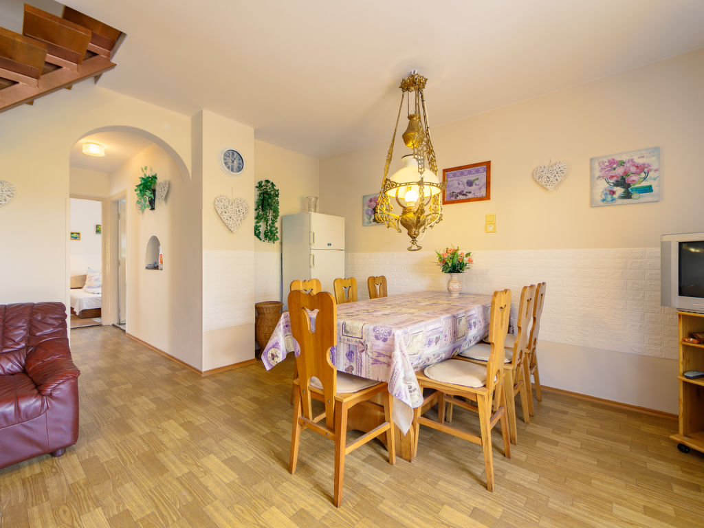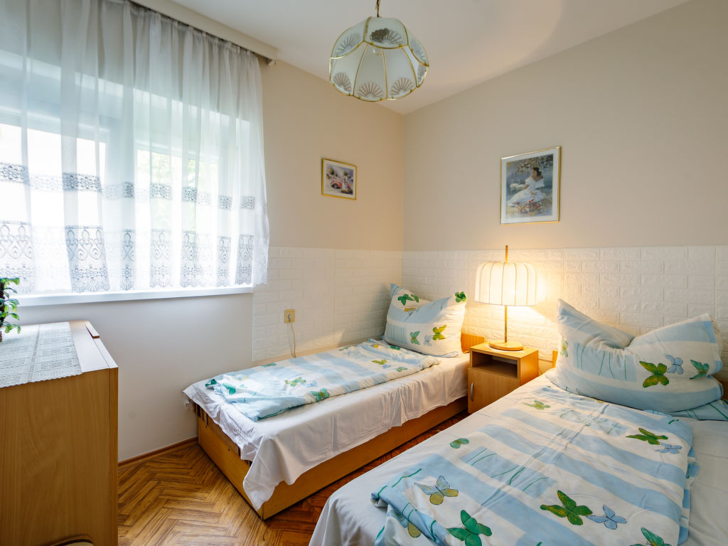 5-Zimmer-Haus 90 m2 auf 2 Stockwerken. Komfortabel eingerichtet: Wohn-/Esszimmer mit Sat-TV. Ausgang zur Terrasse. 1 Zimmer mit 2 Betten. 1 Zimmer mit 1 franz. Bett (160 cm). Küche (3 Kochplatten, Backofen, Mikrowelle). Dusche/WC. Obergeschoss: 2 Zimmer, jedes Zimmer mit 2 Betten. Ausgang zum Balkon. Bad/WC. Balkon 16 m2, Balkon 8 m2. Terrassenmöbel, Gartengrill (mobil). Parkplatz (eingezäunt, 3 Autos). MA21003124