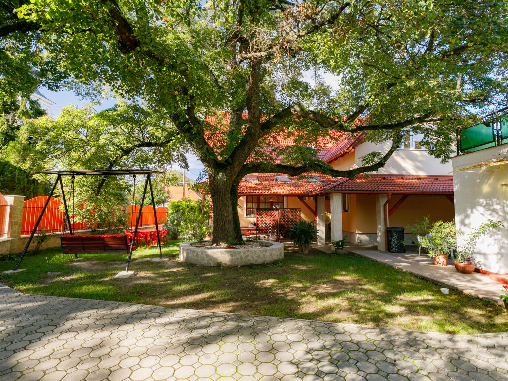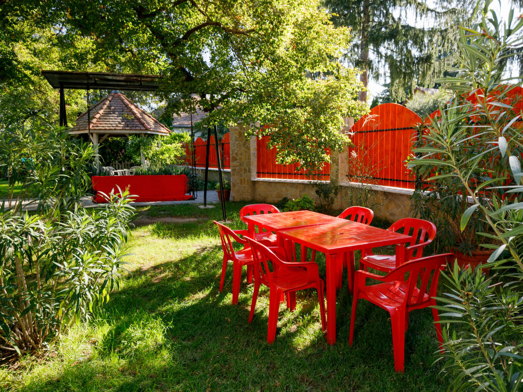 Balatonberény 15 km von Keszthely: Grosses Mehrfamilienhaus auf 2 Stockwerken. Im Ort, 400 m vom See. Zur Mitbenutzung: Grundstück 2'900 m2 (eingezäunt), Garten Rasen und Bäumen. Sitzplatz, Feuerstelle. Im Hause: Wireless LAN. Lebensmittelgeschäft 300 m, Restaurant 200 m, Grasstrand 400 m, FKK - Strand 600 m. Radweg 100 m. Bekannte Seen in der Umgebung sind gut erreichbar: Thermal Hévíz 18 km.