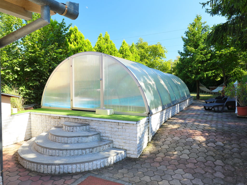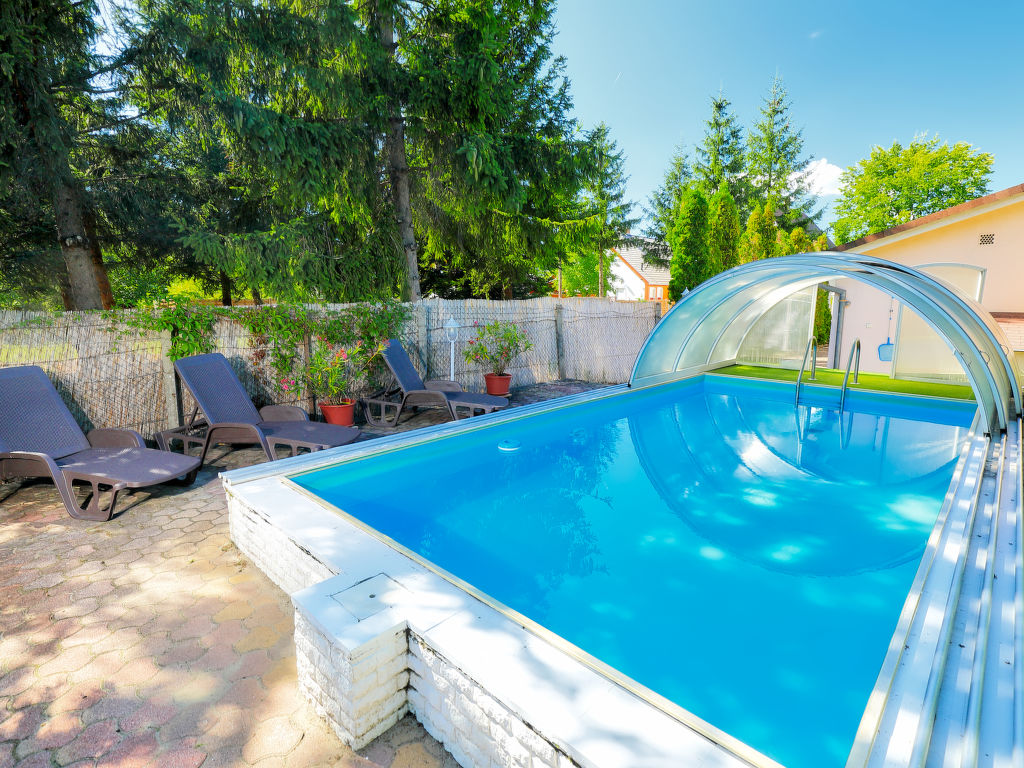 Balatonmária: Komfortables Haus "Chill". Sonnige Lage, 150 m vom See. Zur Alleinbenutzung: Garten 400 m2 (eingezäunt), Schwimmbad eckig (3 x 7 m, 160 cm tief, 01.05. und 15.09.) mit Innentreppe und Rollladenabdeckung. Im Hause: Wireless LAN, Klimaanlage. Lebensmittelgeschäft, Restaurant, Freibad 200 m. Bitte beachten: Eisenbahnlinie in der Nähe.