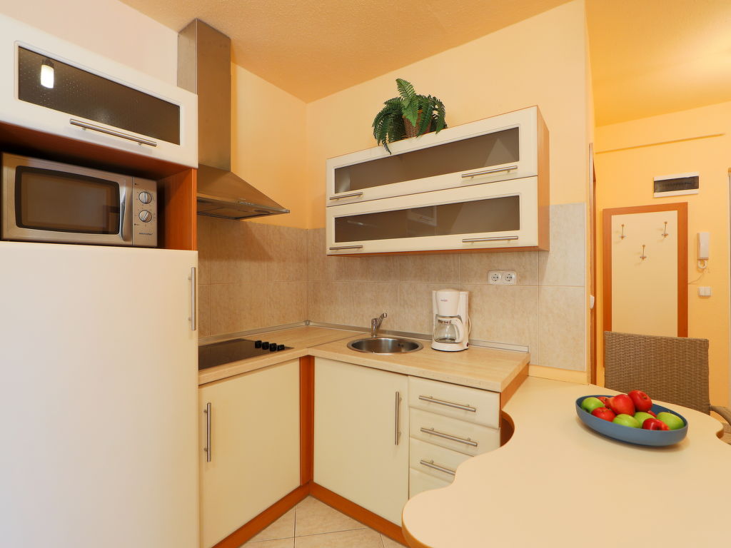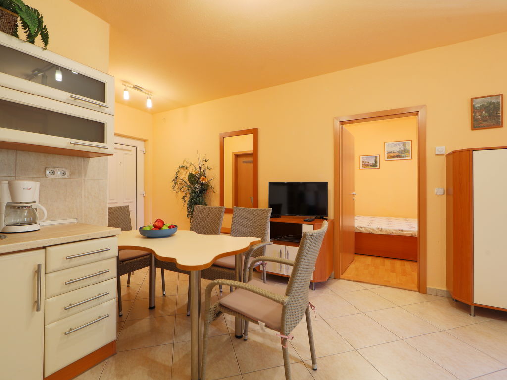 2-Zimmer-Wohnung 40 m2 im 2. Stock. Schön und modern eingerichtet: Wohn-/Schlafzimmer mit 1 Doppeldiwanbett. Ausgang zum Balkon. 1 Zimmer mit 1 franz. Bett. Offene Küche (4 Kochplatten, Mikrowelle) mit Esstisch. Dusche/WC. Balkon. Terrassenmöbel. Schöne Sicht auf den Garten. Parkplatz (eingezäunt).