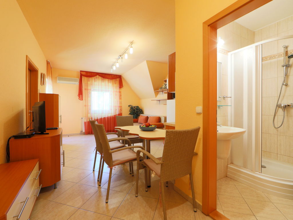 Balatonföldvár: Schönes Appartementhaus "Catalpa", umgeben von Bäumen. Im Ort, 300 m vom Zentrum, zentrale Lage, 100 m vom See. Zur Mitbenutzung: grosser, schöner, gepflegter Garten (eingezäunt). Im Hause: Klimaanlage (extra). Lebensmittelgeschäft 300 m, Restaurant 100 m, Bahnstation "Balatonföldvár" 400 m, Strandbad 300 m. Tennis 20 m.