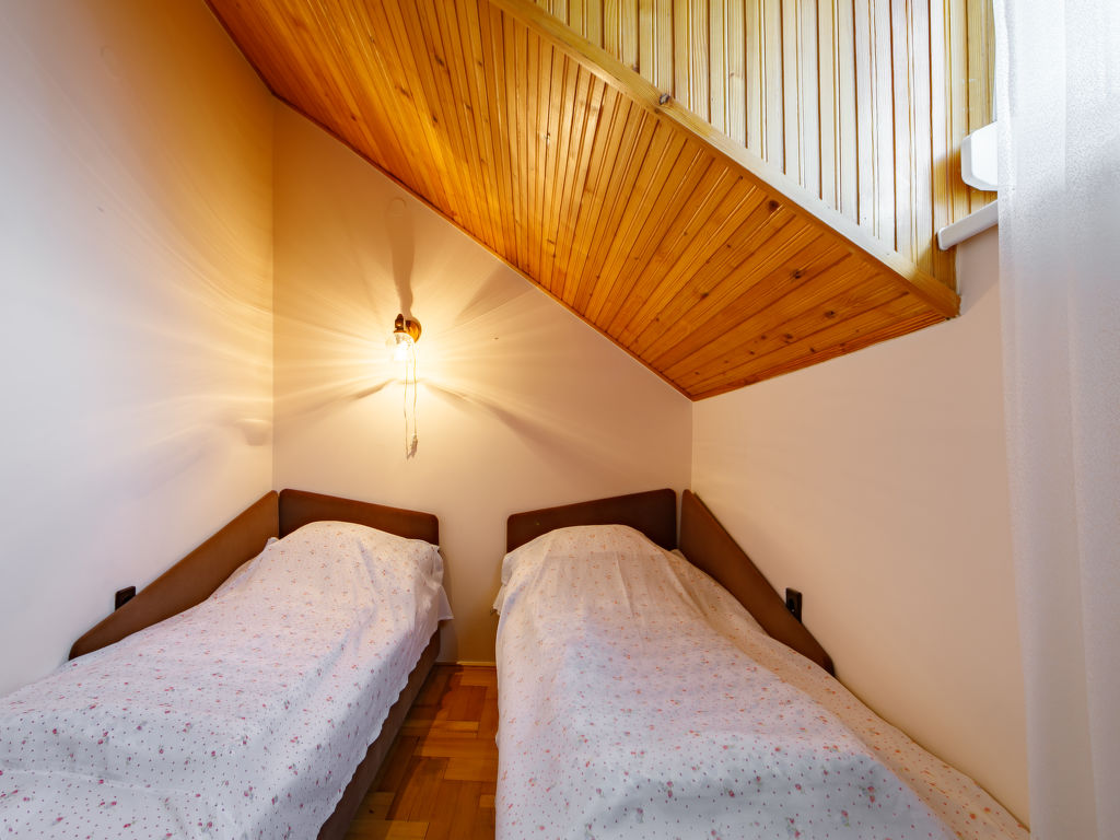 "Daisy 1", 4-Zimmer-Doppelhaushälfte 90 m2 auf 2 Stockwerken. Teilweise abgeschrägt, gemütlich eingerichtet: Wohn-/Esszimmer mit Esstisch und Sat-TV. Ausgang zur Terrasse. Offene Küche (4 Kochplatten, Backofen, Mikrowelle). Dusche, sep. WC. Obergeschoss: 1 Zimmer mit 1 franz. Bett. 1 Zimmer mit 1 Bett. 1 kleines Zimmer mit 2 Betten. Dusche/WC. Grosse Terrasse 25 m2, Terrasse 18 m2. Gartengrill (mobil). Parkplatz (eingezäunt, 2 Autos). MA20013205