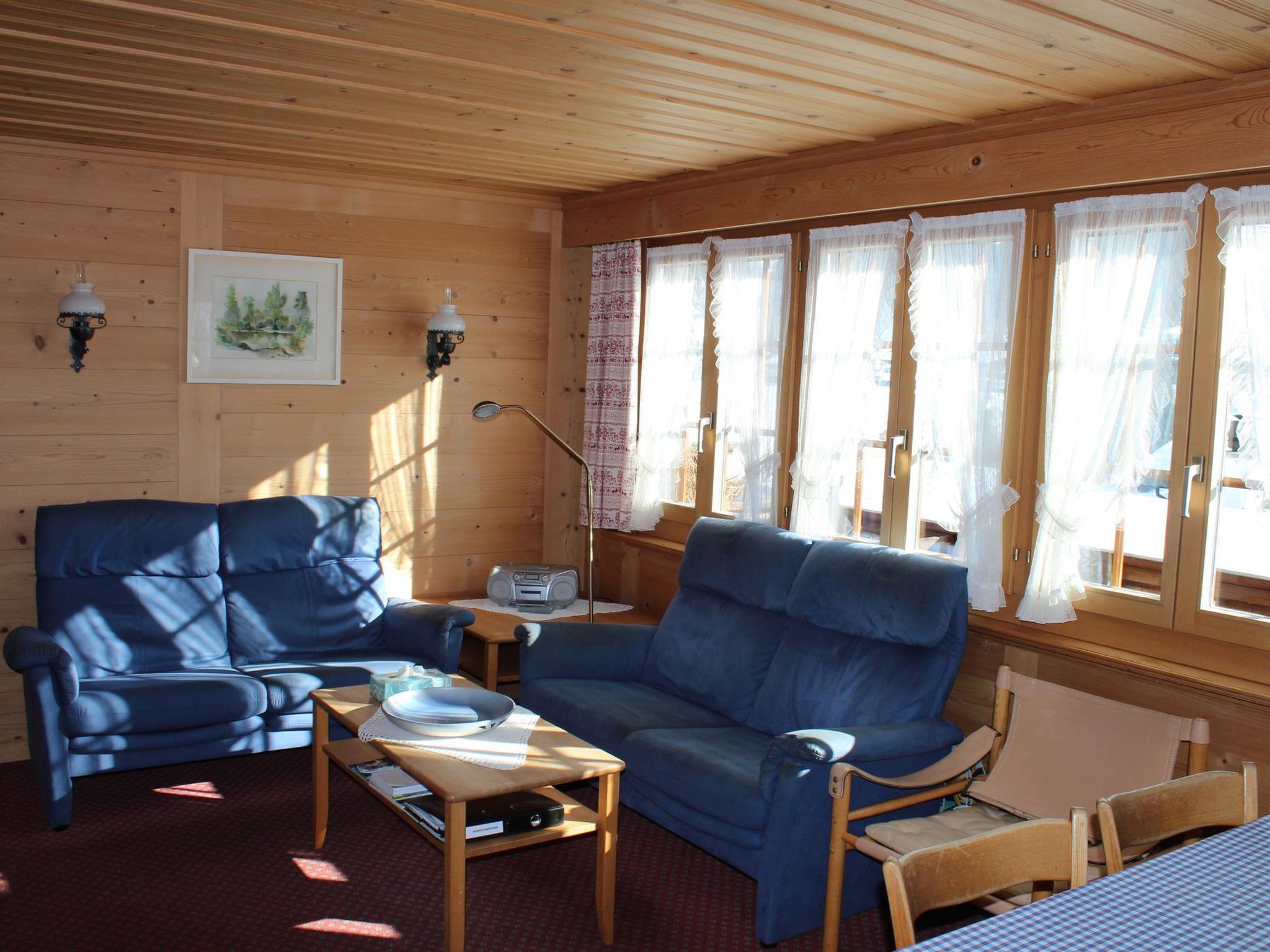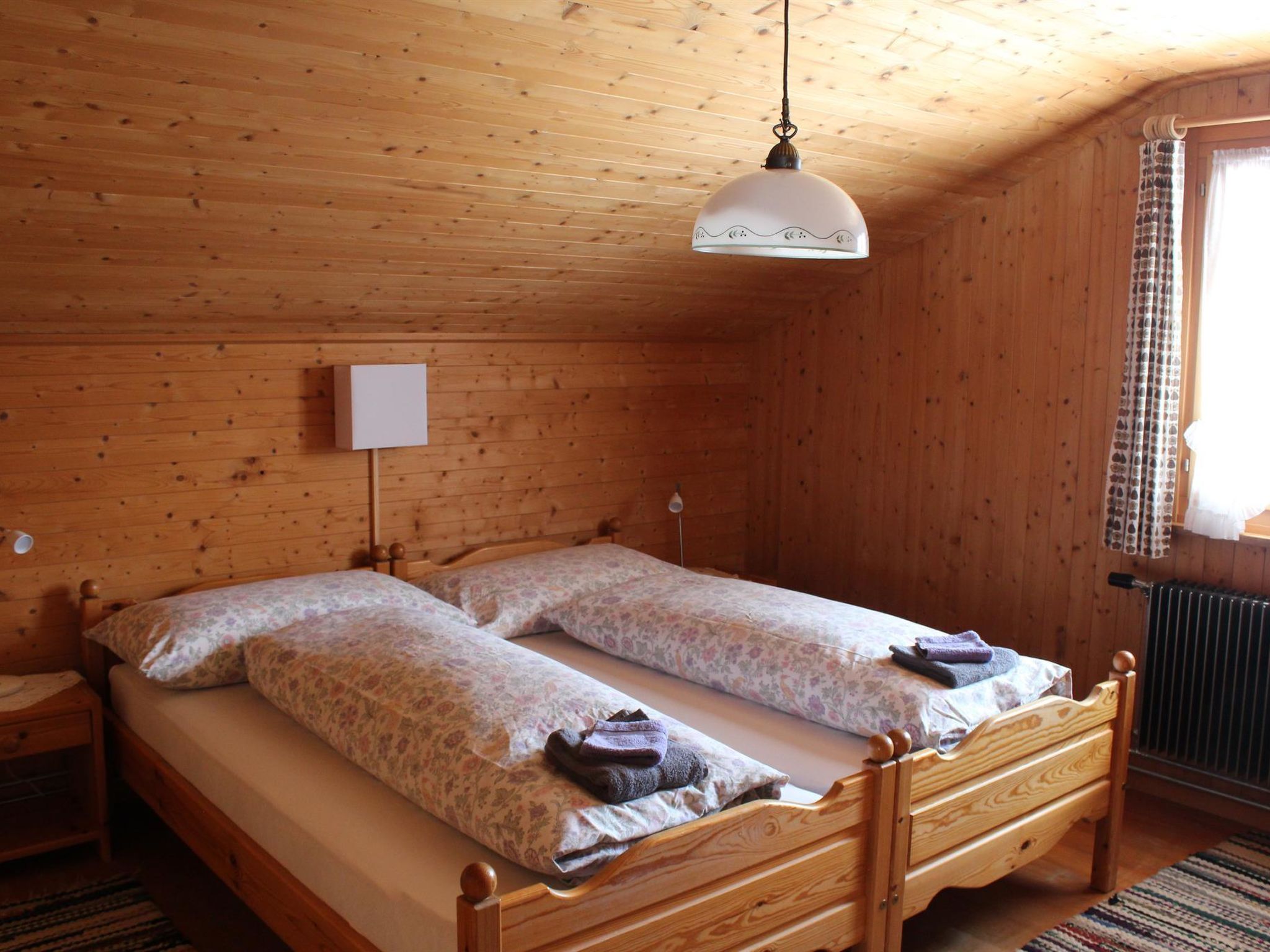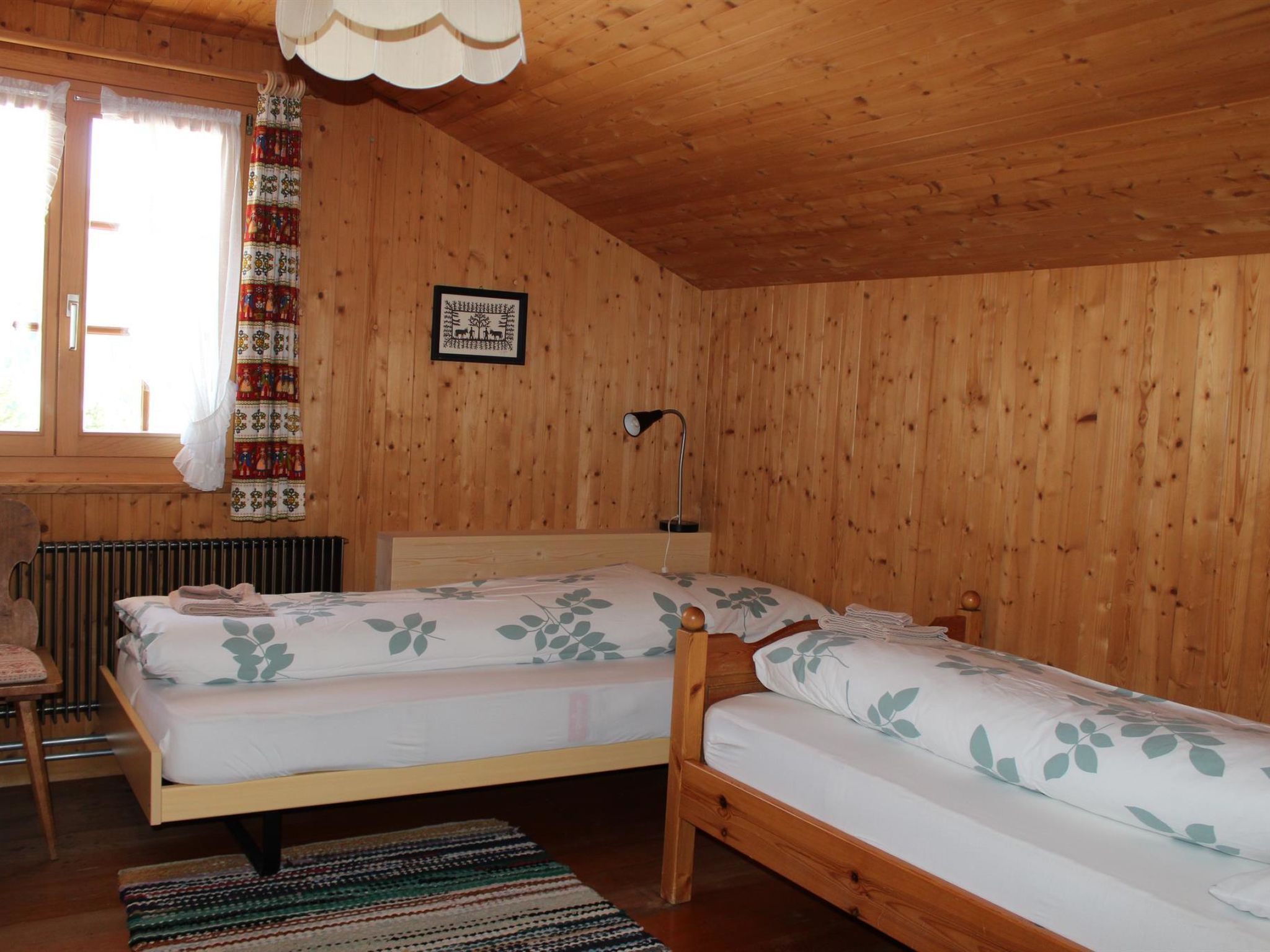 1. Stock: 1 Wohn-/Esszimmer mit TV, Radio und Telefon. Küche u.a. ausgestattet mit Geschirrspüler, Fondue- und Raclette-Set. Waschmaschine und Wäschetrockner. 1 Schlafzimmer mit 2 Betten (90x190cm). Bad/WC. WiFi. 2. Stock: 1 Schlafzimmer mit 2 Betten (2x90x190cm). 1 Schlafzimmer mit 2 Betten (90x190cm). 1 Schlafzimmer mit 1 Bett (90x190cm). WC. Kinderbett (70x140cm) inkl. Bettwäsche und Kinderhochstuhl vorhanden.