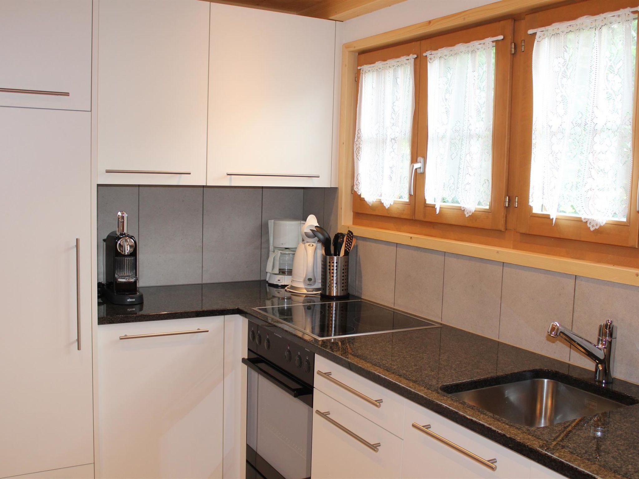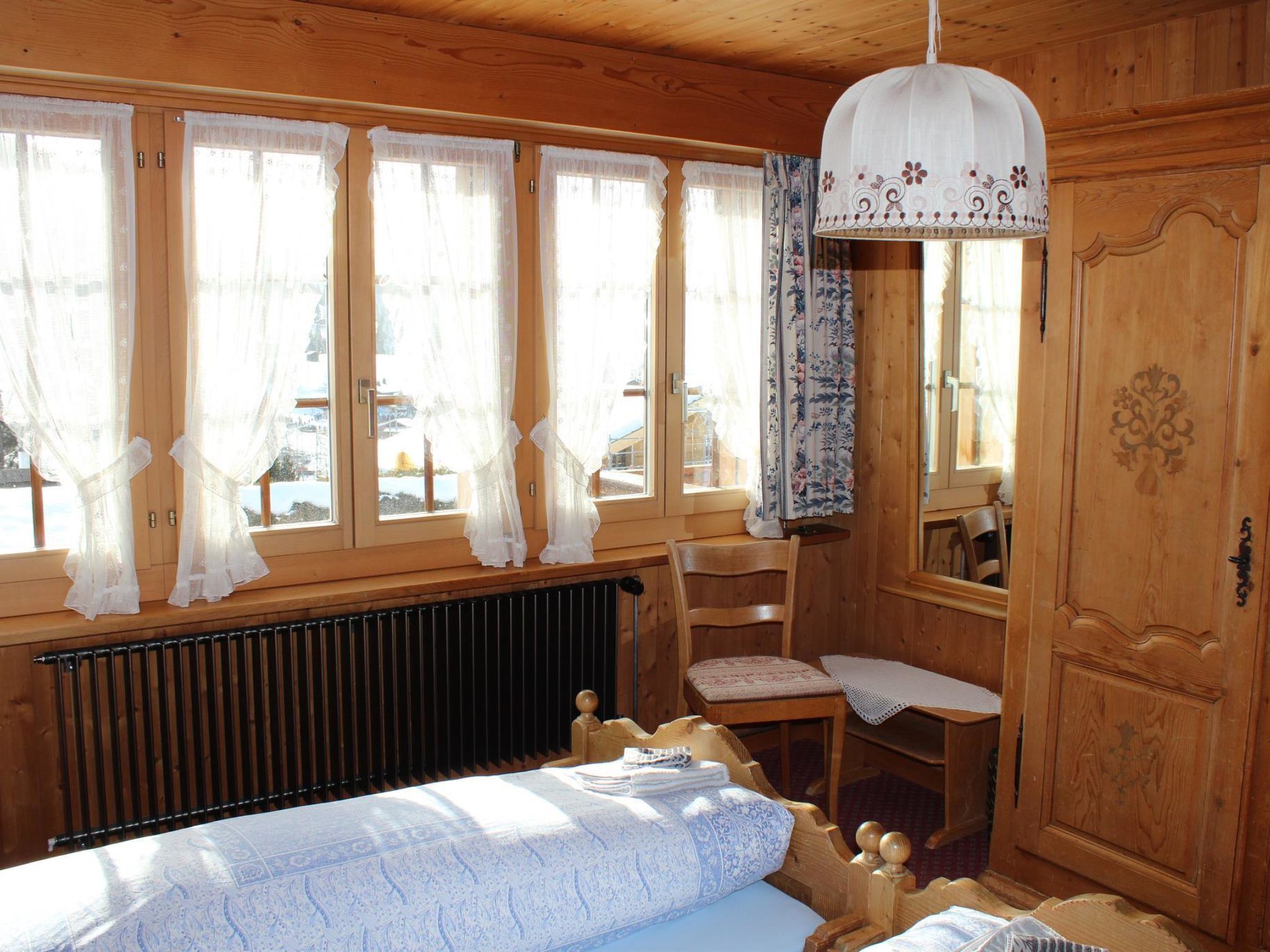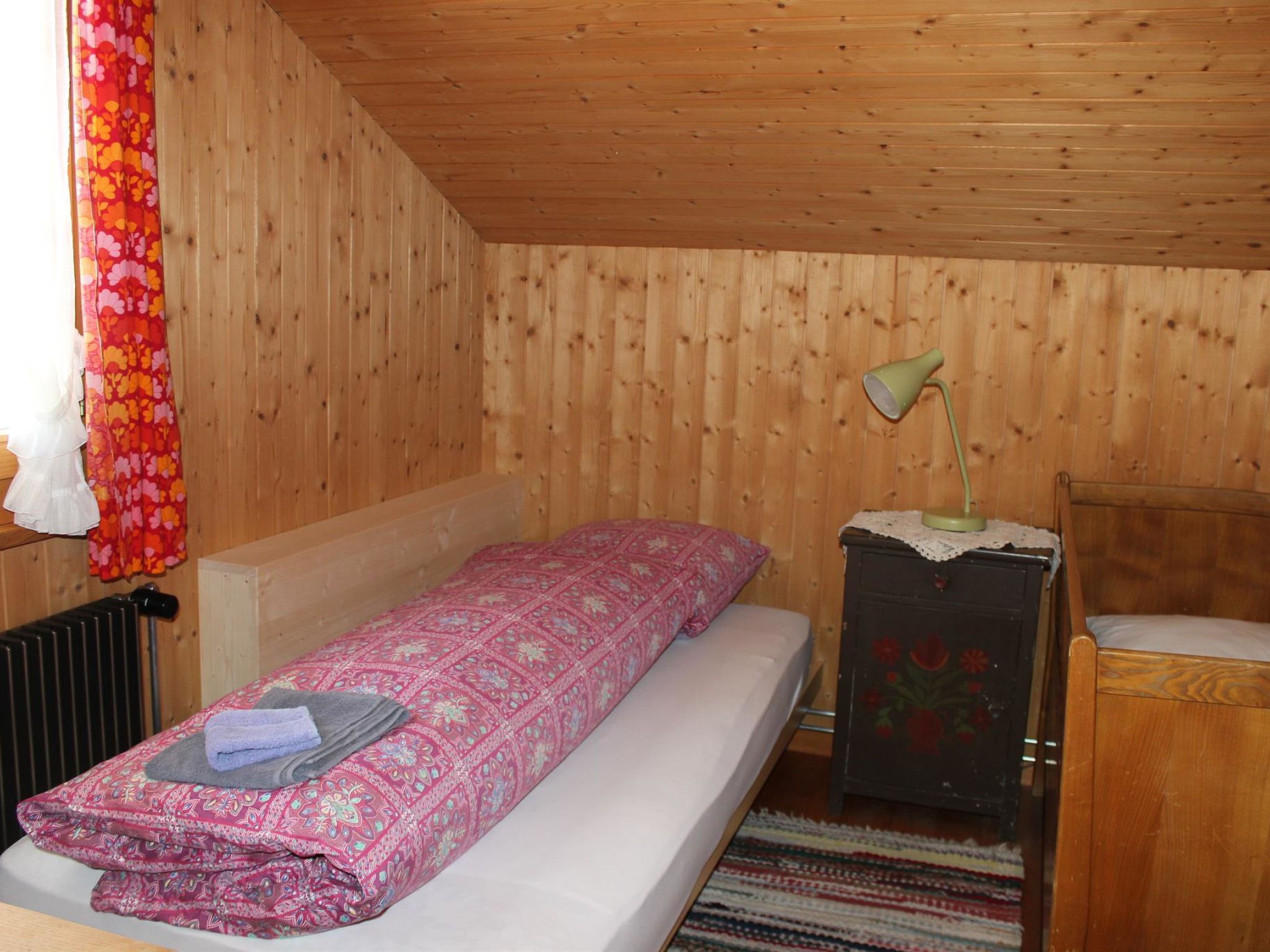 1. Stock: 1 Wohn-/Esszimmer mit TV, Radio und Telefon. Küche u.a. ausgestattet mit Geschirrspüler, Fondue- und Raclette-Set. Waschmaschine und Wäschetrockner. 1 Schlafzimmer mit 2 Betten (90x190cm). Bad/WC. WiFi. 2. Stock: 1 Schlafzimmer mit 2 Betten (2x90x190cm). 1 Schlafzimmer mit 2 Betten (90x190cm). 1 Schlafzimmer mit 1 Bett (90x190cm). WC. Kinderbett (70x140cm) inkl. Bettwäsche und Kinderhochstuhl vorhanden.