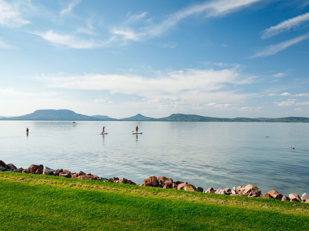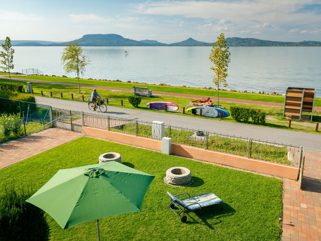 Fonyód: Modernes Doppelhaus "Beach House", auf 2 Stockwerken, Baujahr 2013. Ruhige, sonnige Lage, direkt am See, direkter Zugang zum Strand. Zur Alleinbenutzung: Garten (eingezäunt). Im Hause: Wireless LAN, Klimaanlage. Grasstrand 30 m, Thermalbad "Csisztapuszta" 14 km. Bitte beachten: Angeln (mit Bewilligung).