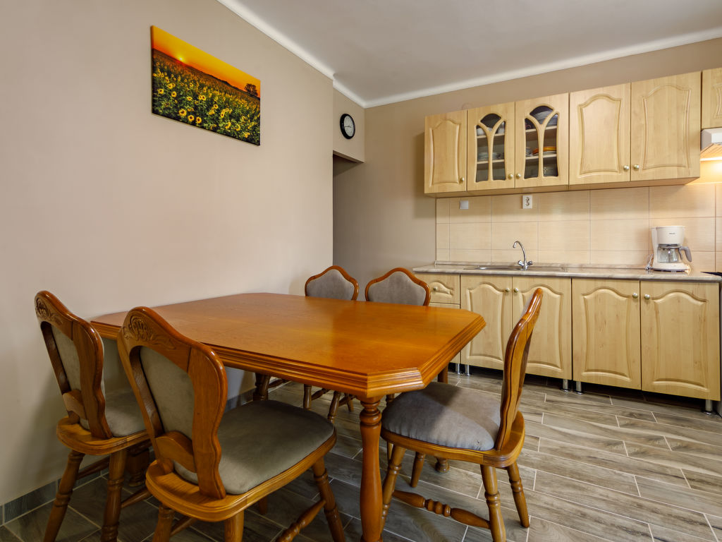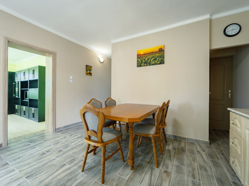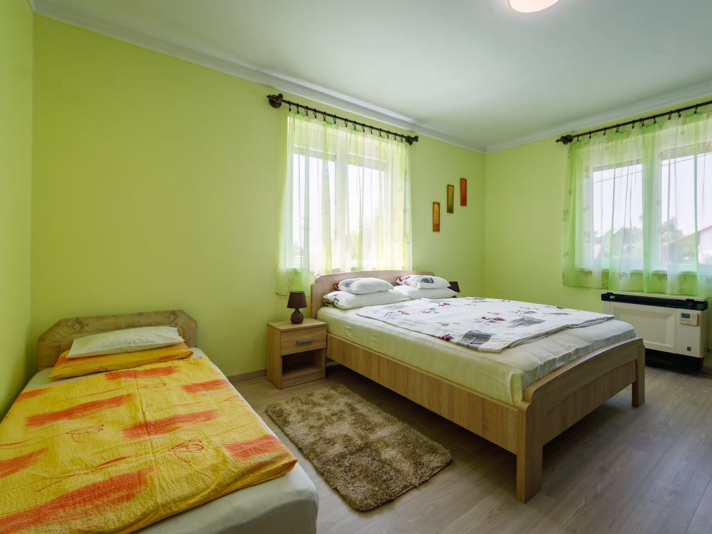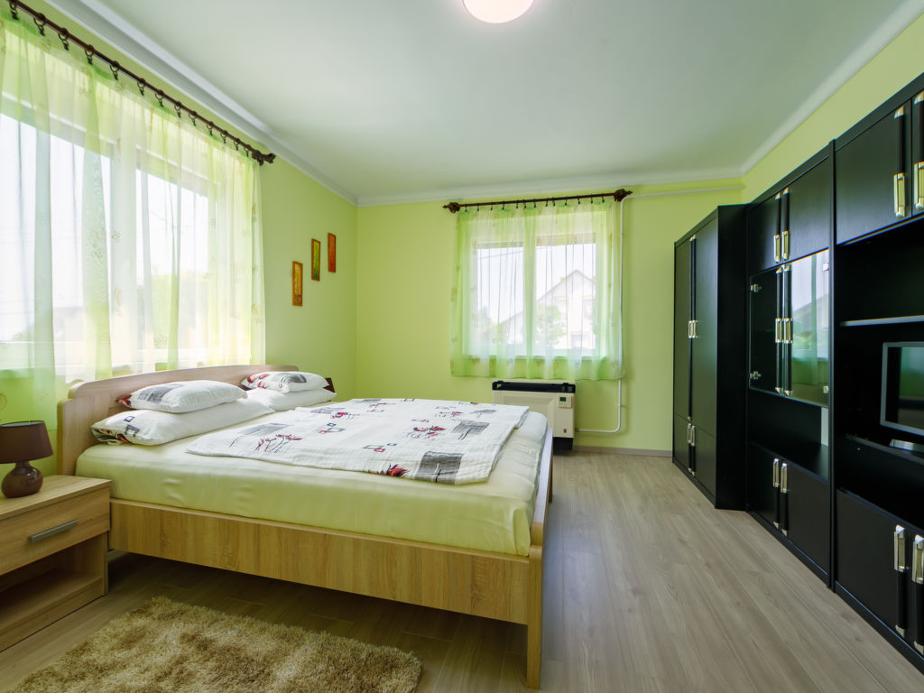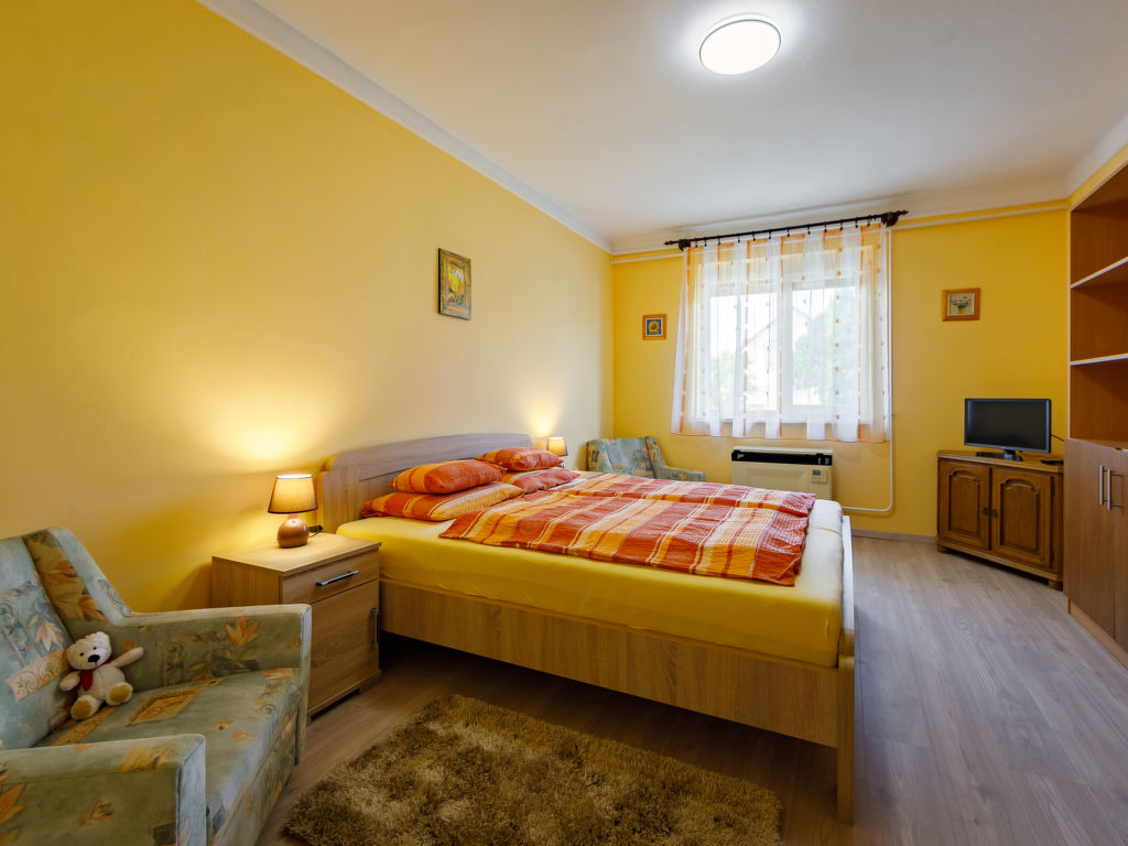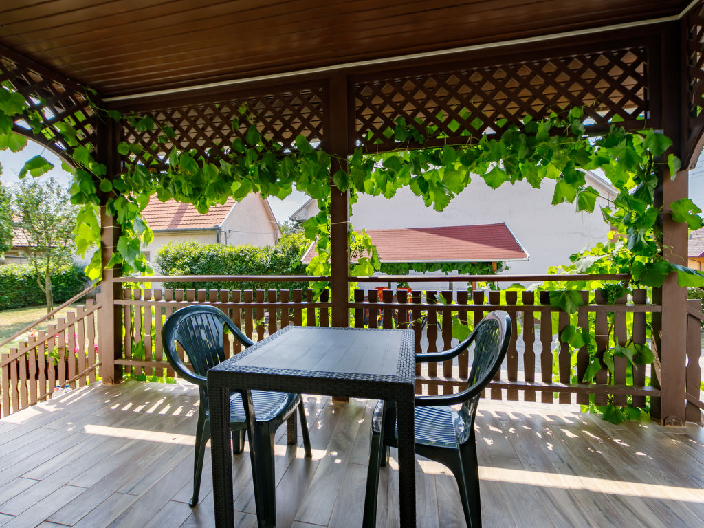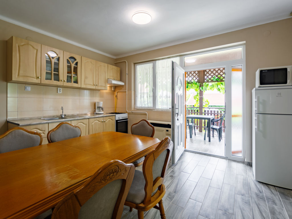 "Balaton A360", 3-Zimmer-Wohnung 70 m2, im Erdgeschoss. Vollständig renoviert im Jahre 2021, komfortabel eingerichtet: 1 Zimmer mit 1 Bett und 1 franz. Bett (160 cm, Länge 200 cm). 1 Zimmer mit 1 franz. Bett (160 cm, Länge 200 cm), Sat-TV. Esszimmer. Offene Küche (4 Kochplatten, Backofen, Mikrowelle, Tiefkühler) mit Esstisch. Ausgang zur Terrasse. Bad/Dusche, sep. WC. Terrasse 12 m2, Gartensitzplatz 15 m2. Terrassenmöbel, Gartengrill (mobil). Parkplatz (eingezäunt, 2 Autos). MA19020940