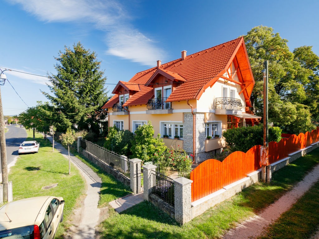 Balatonberény 15 km von Keszthely: Grosses Mehrfamilienhaus auf 2 Stockwerken. Im Ort, 400 m vom See. Zur Mitbenutzung: Grundstück 2'900 m2 (eingezäunt), Garten Rasen und Bäumen. Sitzplatz, Feuerstelle. Im Hause: Wireless LAN. Lebensmittelgeschäft 300 m, Restaurant 200 m, Grasstrand 400 m, FKK - Strand 600 m. Radweg 100 m. Bekannte Seen in der Umgebung sind gut erreichbar: Thermal Hévíz 18 km.