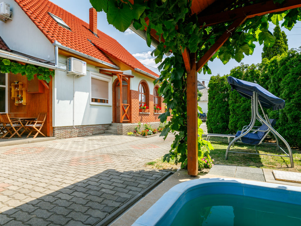 Balatonszárszó 25 km von Siófok: Zweifamilienhaus. Im Ort, ruhige, sonnige Lage, 1 km vom See. Zur Mitbenutzung: Grundstück (eingezäunt), Garten mit Blumen, Schwimmbad eckig beheizt (3 x 2 m, 100 cm tief, saisonale Verfügbarkeit: 01.Mai.-30.Sep.). Sitzplatz. Im Hause: Wireless LAN, Klimaanlage (extra). Lebensmittelgeschäft, Restaurant 200 m, Grasstrand 1 km.