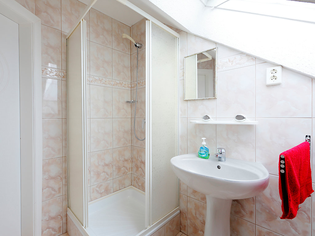 3-Zimmer-Wohnung 55 m2, im Obergeschoss. Teilweise abgeschrägt, einfach und gemütlich eingerichtet: 1 Doppelzimmer. Ausgang zum Balkon. 1 Doppelzimmer. Wohnküche (2 Kochplatten) mit Esstisch und Sat-TV. Dusche, sep. WC. Balkon. Terrassenmöbel. Bitte beachten: das Zusatzbett ist nur für Kinder bis 14 Jahre.
