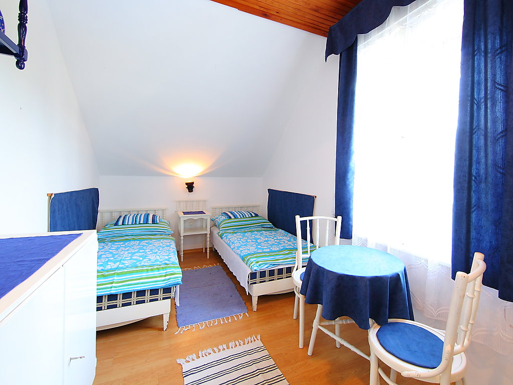 3-Zimmer-Doppelhaushälfte 65 m2. Zweckmässig eingerichtet: Wohnzimmer mit Sat-TV. Ausgang zur Terrasse. Küche (2 Kochplatten, Backofen, Mikrowelle) mit Esstisch. Dusche, sep. WC. Obergeschoss: 1 Zimmer mit 2 Betten. Ausgang zum Balkon. 1 Zimmer mit 2 Betten. Sep. WC. Terrasse 12 m2, Terrasse 18 m2. Terrassenmöbel, Liegestühle (1). Parkplatz (eingezäunt). MA19022165