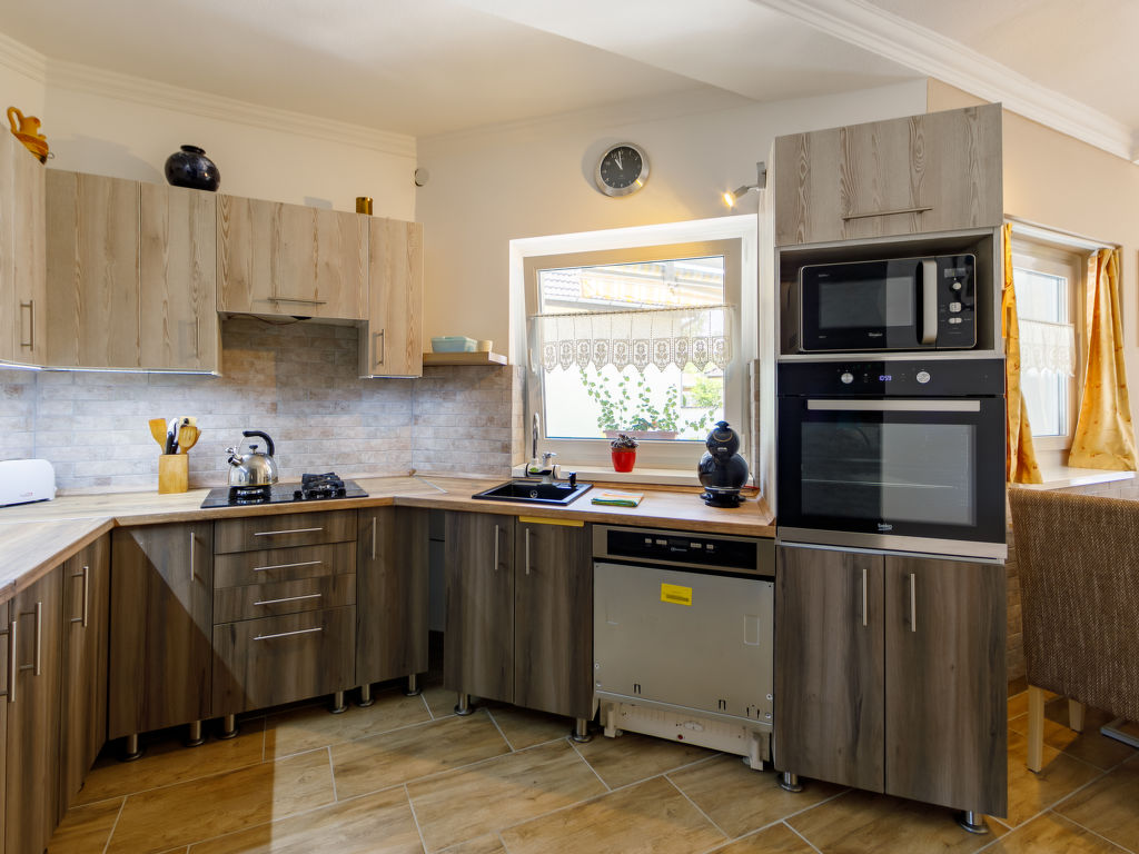 Balatonlelle: Gemütliches Einfamilienhaus "Ildiko". Am Ortsrand, ruhige, sonnige Lage, 1.8 km vom See. Zur Mitbenutzung: Garten 650 m2 (eingezäunt). Zur Alleinbenutzung: Feuerstelle (Schaukel, Sandkasten). Im Hause: Wireless LAN. Lebensmittelgeschäft 1 km, Sandstrand 1.8 km. Reitstall 1.5 km. Bitte beachten: Der Besitzer wohnt auf dem gleichen Grundstück.