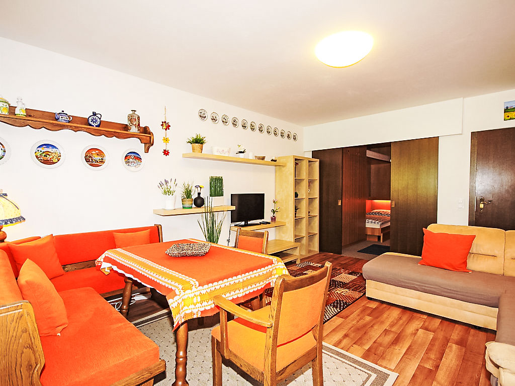 "Walter", 2-Zimmer-Wohnung 42 m2 im 2. Stock. Renoviert im Jahre 2014, modern und gemütlich eingerichtet: Eingang mit sep. WC. Wohn-/Esszimmer mit 1 Diwanbett, Essecke und Sat-TV (Flachbildschirm). Ausgang zum Balkon. 1 kleines Zimmer mit Schiebetür, ohne Fenster mit 2 Betten (90 cm, Länge 200 cm). Offene Küche (Backofen, Geschirrspüler, 4 Glaskeramikherd Platten, Toaster, Wasserkocher, Mikrowelle, elektrische Kaffeemaschine). Bad/Dusche. Kleiner Balkon 7 m2. Balkonmöbel. Sehr schöne Sicht auf die Berge. Bitte beachten: Nichtraucher-Unterkunft. Tiefgaragenplatz direkt im Haus mit Liftanbindung. 50402-000685-2020