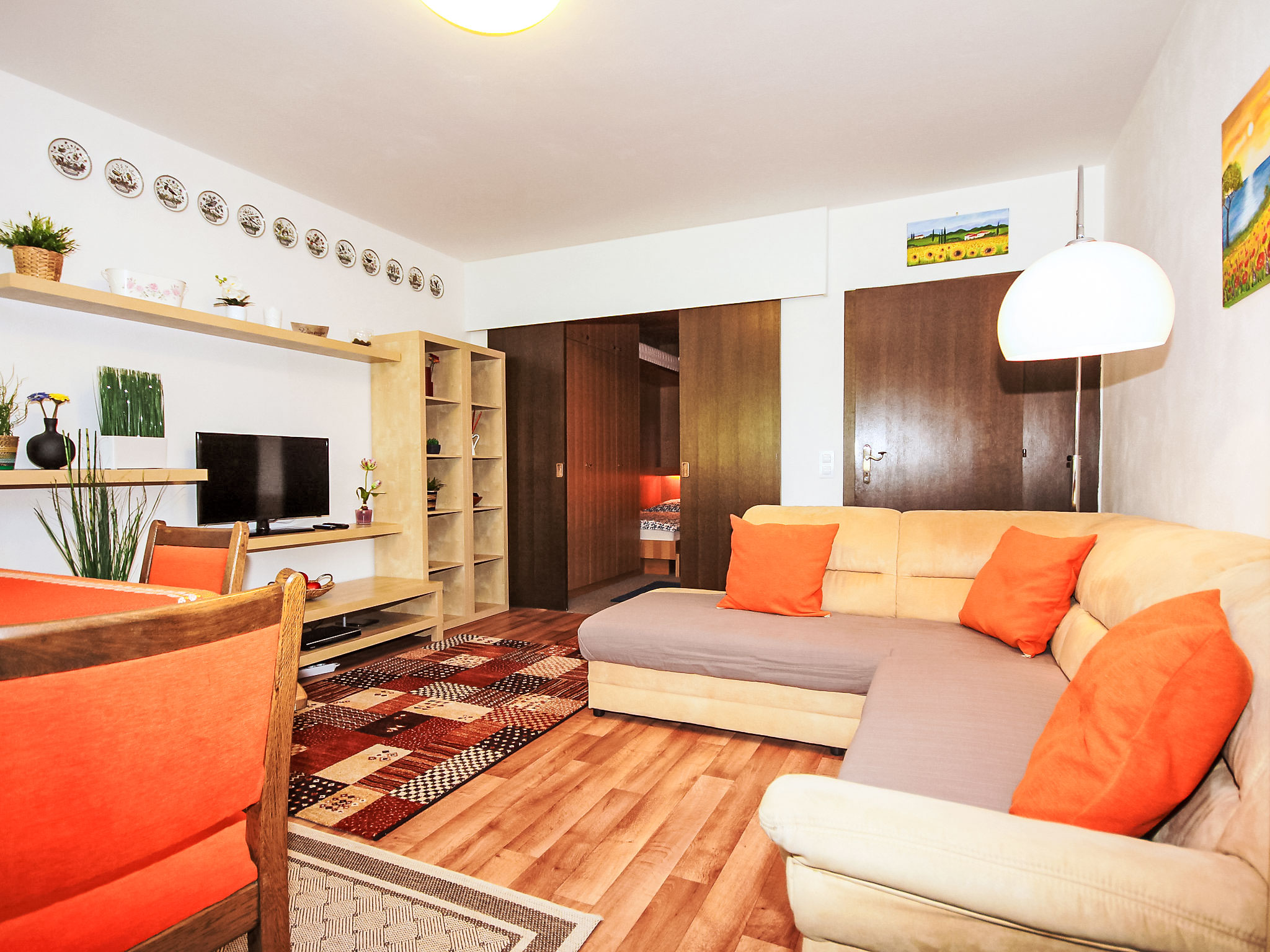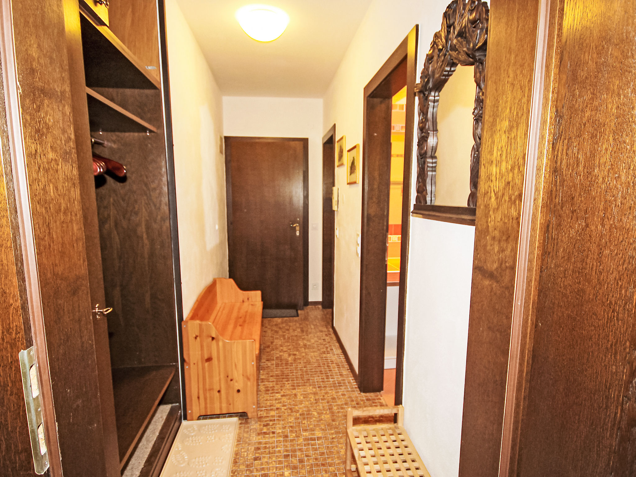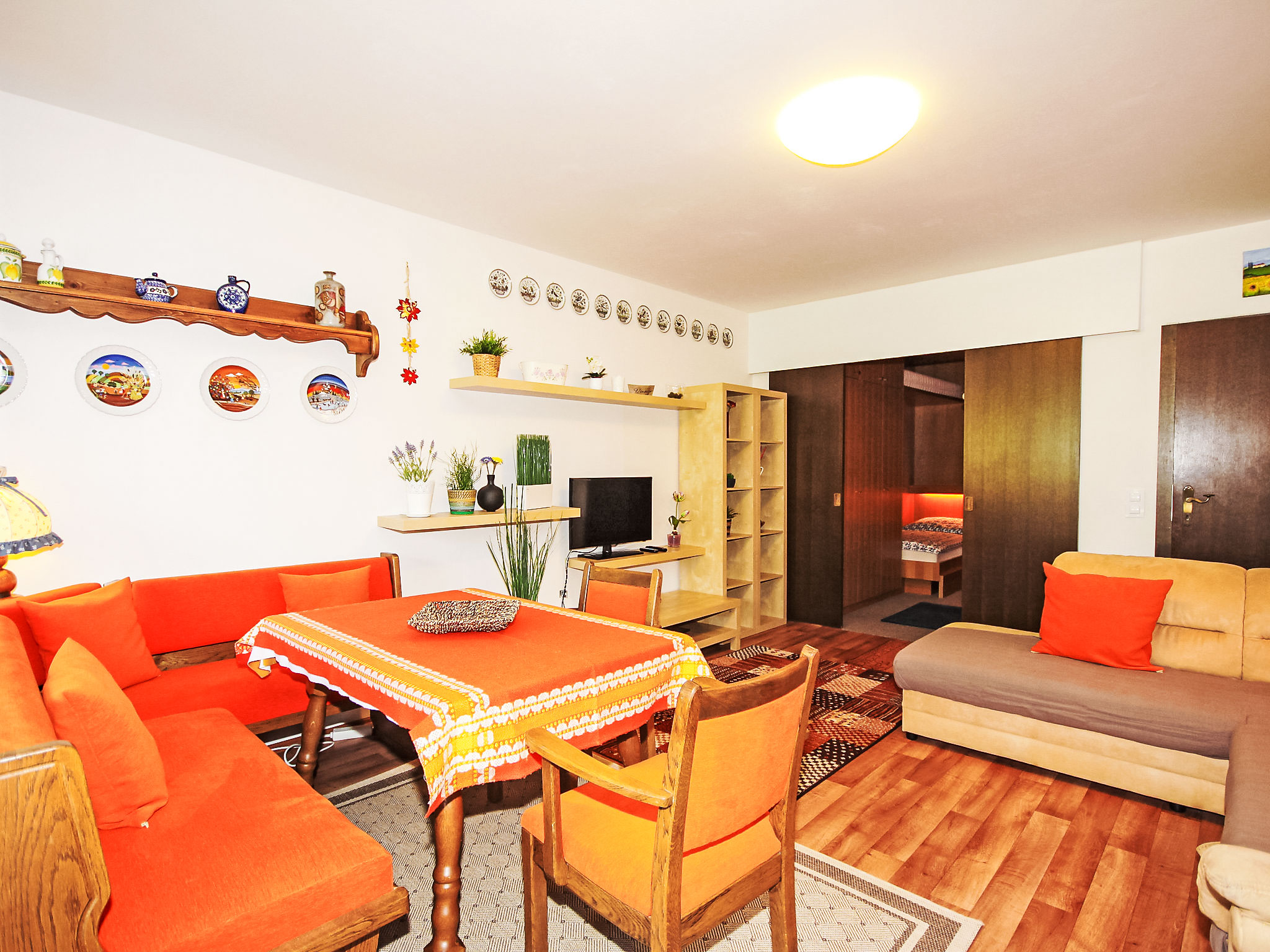 "Walter", 2-Zimmer-Wohnung 42 m2 im 2. Stock. Renoviert im Jahre 2014, modern und gemütlich eingerichtet: Eingang mit sep. WC. Wohn-/Esszimmer mit 1 Diwanbett, Essecke und Sat-TV (Flachbildschirm). Ausgang zum Balkon. 1 kleines Zimmer mit Schiebetür, ohne Fenster mit 2 Betten (90 cm, Länge 200 cm). Offene Küche (Backofen, Geschirrspüler, 4 Glaskeramikherd Platten, Toaster, Wasserkocher, Mikrowelle, elektrische Kaffeemaschine). Bad/Dusche. Kleiner Balkon 7 m2. Balkonmöbel. Sehr schöne Sicht auf die Berge. Bitte beachten: Nichtraucher-Unterkunft. Tiefgaragenplatz direkt im Haus mit Liftanbindung. 50402-000685-2020