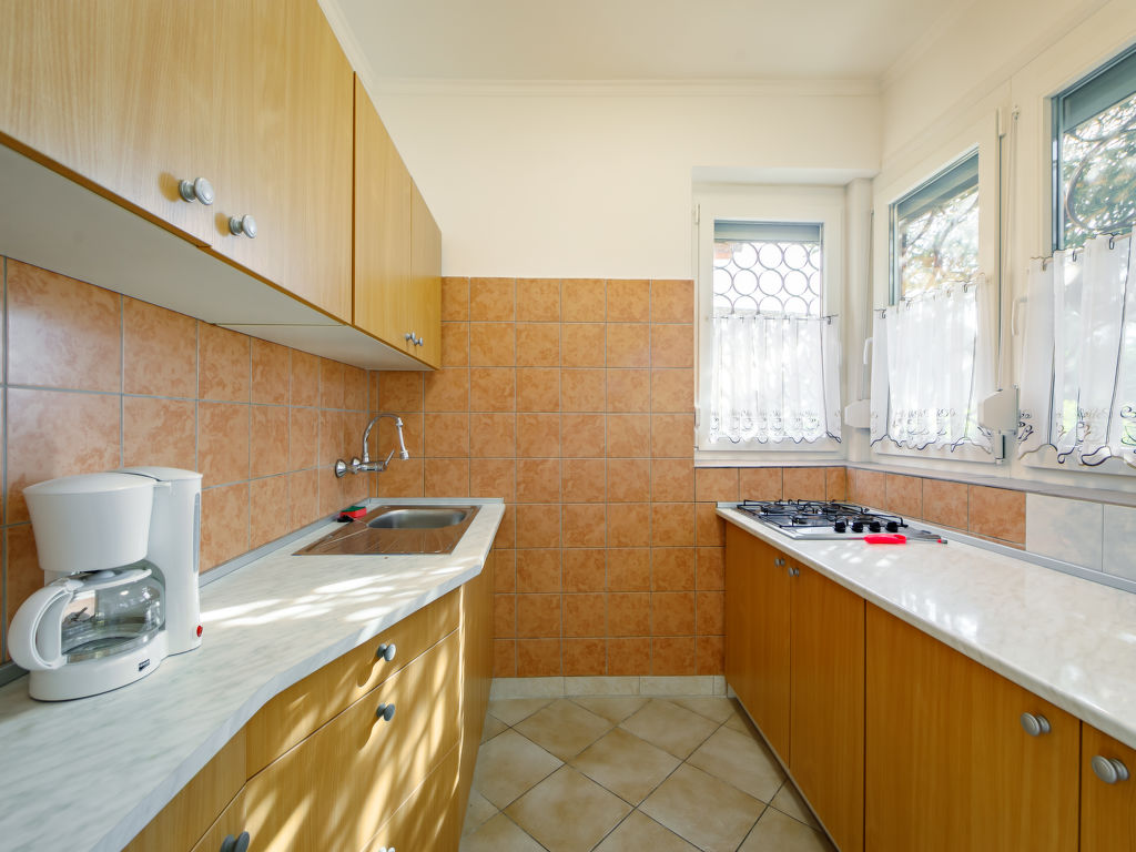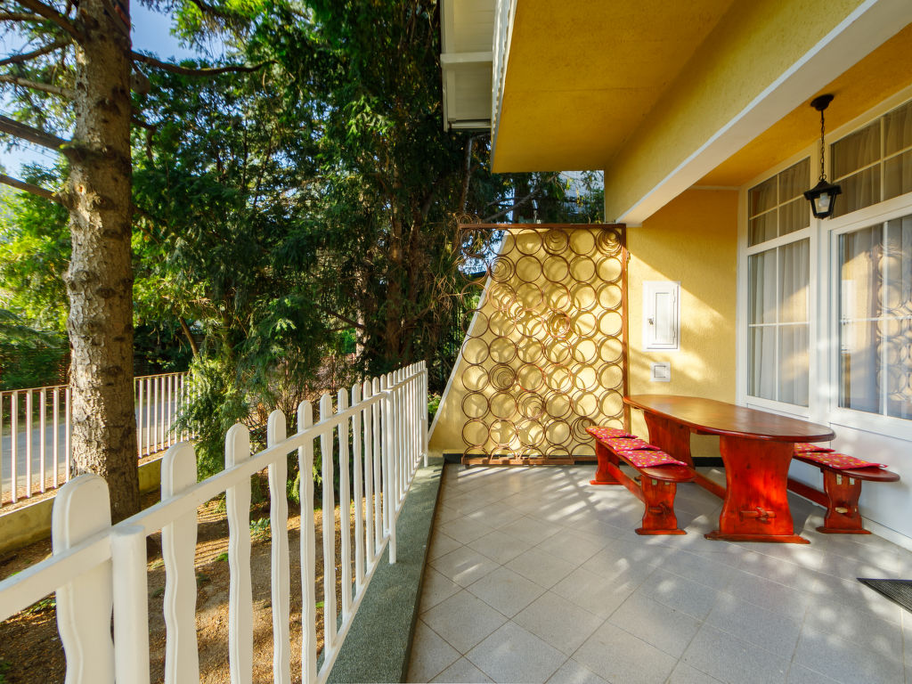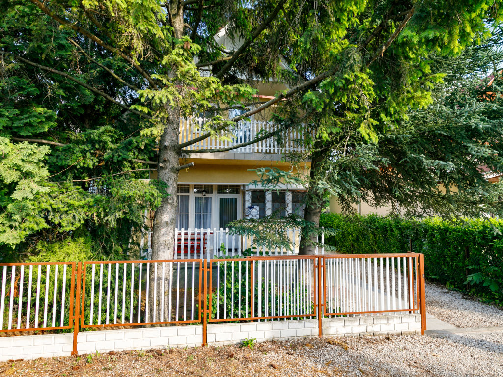 Sóstó 10 km von Siófok: Schönes Haus. 350 m vom Zentrum, ruhige, sonnige Lage, 400 m vom Strand. Zur Mitbenutzung: Garten (eingezäunt) mit Rasen und Bäumen, Liegewiese. Aussendusche, Gartenmöbel, Grill, Feuerstelle. Lebensmittelgeschäft 350 m, Restaurant 400 m, Thermalbad 2 km, Strandbad 400 m. Tennis 200 m. Bitte beachten: In diesem Haus sind weitere Ferienwohnungen mietbar. Wasserski 1.5 km.