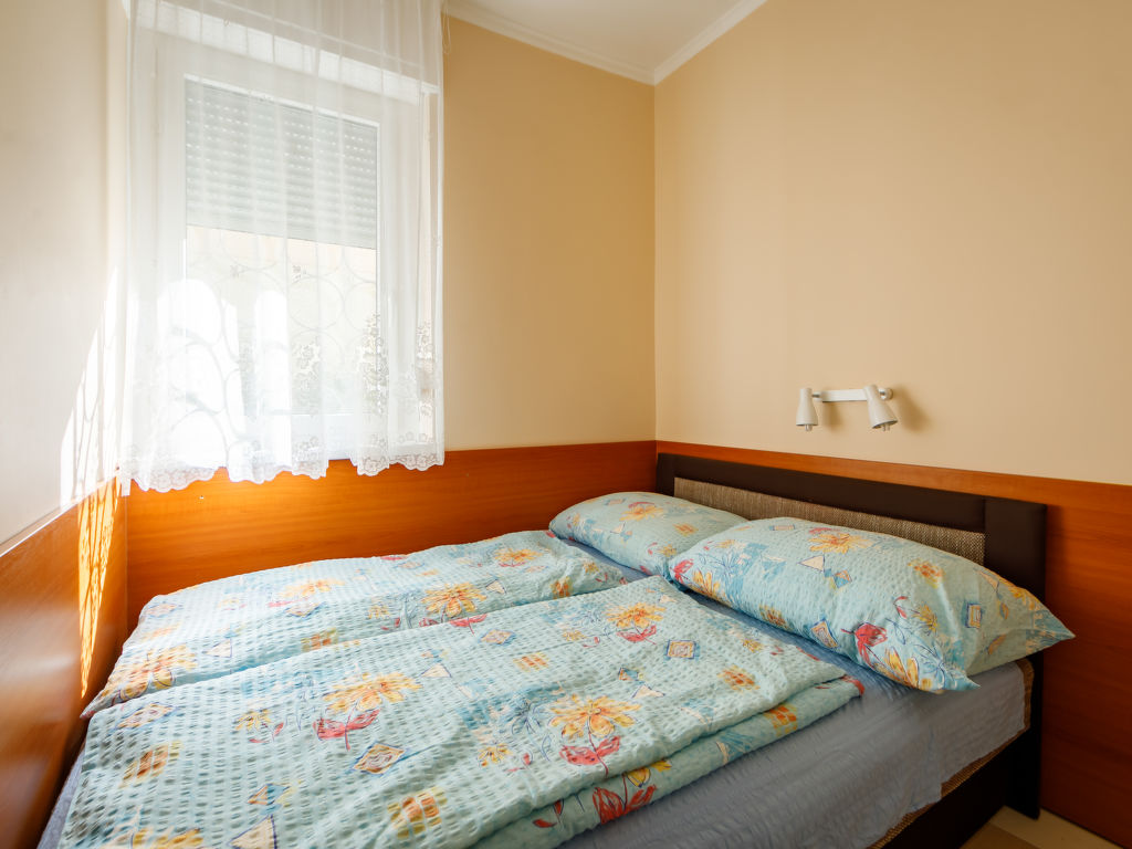 "Balaton A602", 4-Zimmer-Wohnung 50 m2, im Erdgeschoss. Gemütlich eingerichtet: Wohn-/Esszimmer mit Sat-TV. 3 Zimmer, jedes Zimmer mit 1 franz. Bett. Küche (3 Kochplatten, Mikrowelle). Dusche/WC. Terrasse überdacht. Terrassenmöbel. Parkplatz (eingezäunt). MA20003498