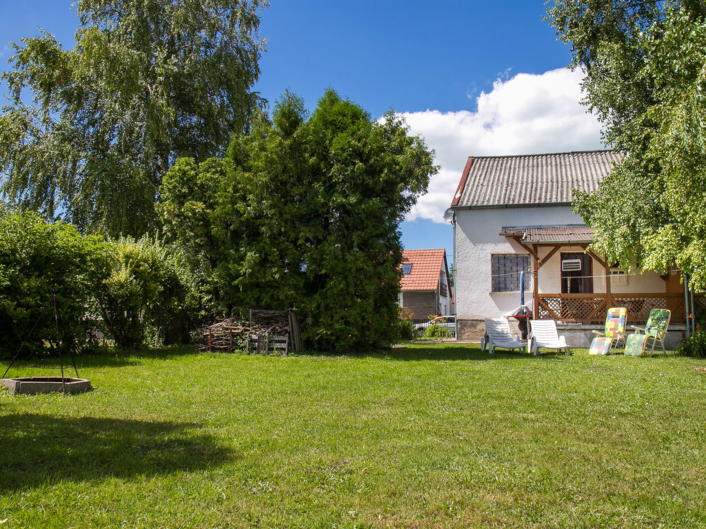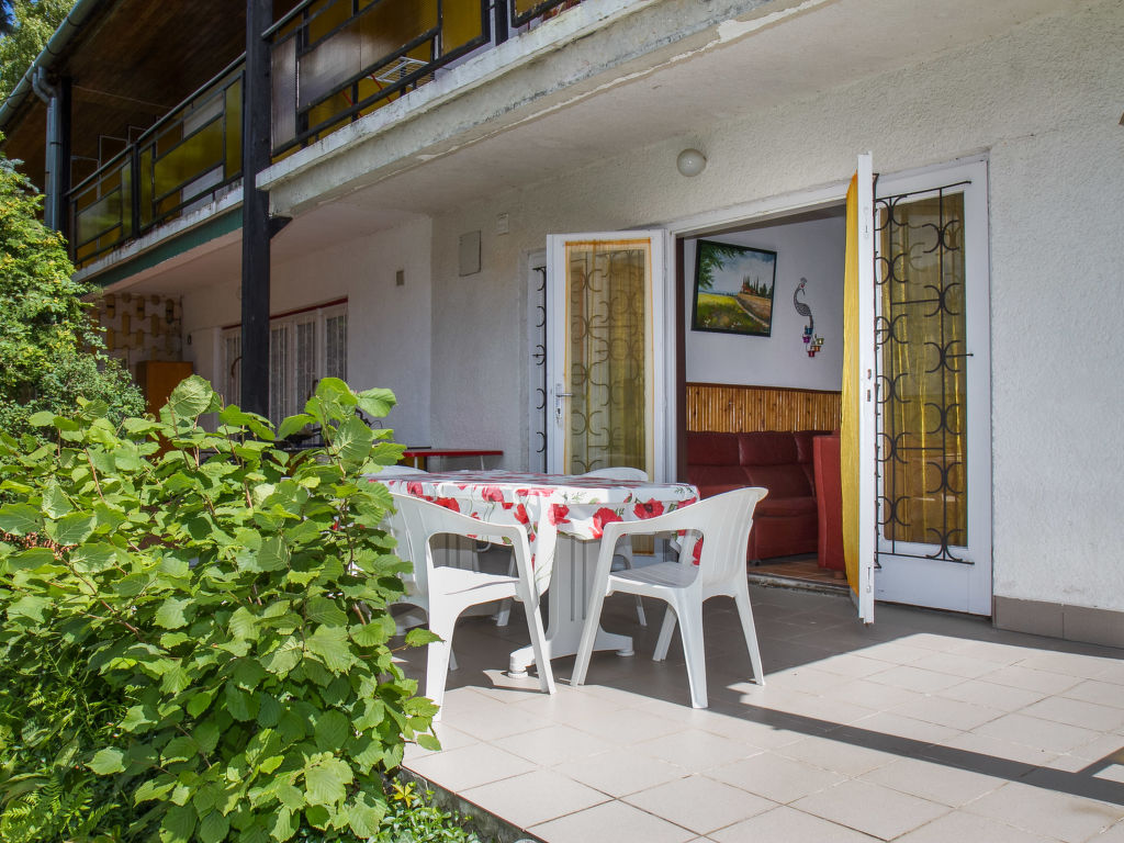 Balatonboglár: Reihenhaus "Pino", auf 2 Stockwerken. Im Ort, ruhige, sonnige Lage, 600 m vom See. Zur Alleinbenutzung: Garten. Im Hause: Waschmaschine. Lebensmittelgeschäft 1 km, Restaurant 500 m, Grasstrand 600 m.