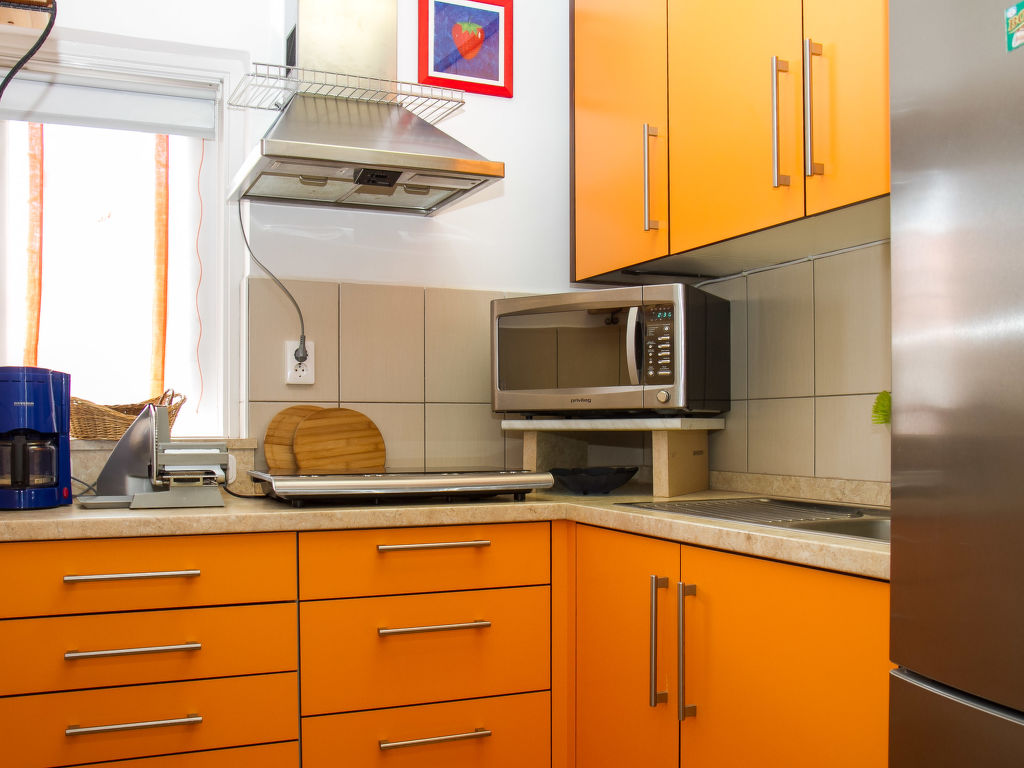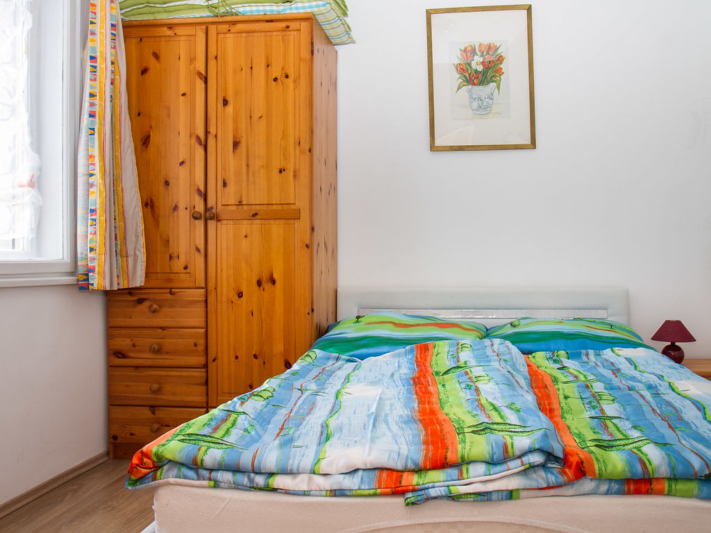 4-Zimmer-Wohnung 85 m2. Zweckmässig eingerichtet: Wohnzimmer mit Sat-TV. Ausgang zur Terrasse. 1 Zimmer mit 1 franz. Bett. Kleine Küche (2 Kochplatten, Mikrowelle) mit Esstisch. Dusche/WC. Obergeschoss: 1 Zimmer mit 1 franz. Bett. Ausgang zum Balkon. 1 Zimmer mit 2 Betten. Ausgang zum Balkon. Dusche/WC. Balkon, Terrasse. Terrassenmöbel, Balkonmöbel, Gartengrill (mobil). Parkplatz.