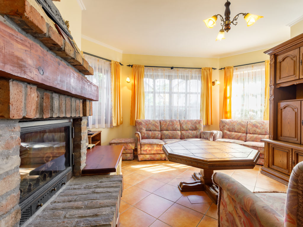 "Tamas (SZA180)", 3-Zimmer-Haus 80 m2. Gemütlich eingerichtet: Wohn-/Schlafzimmer mit 1 Doppeldiwanbett und offenem Kamin (nur Deko), Esstisch und Sat-TV (Flachbildschirm). 1 Zimmer mit 2 Betten und Klimaanlage. 1 Doppelzimmer mit Klimaanlage. Offene Küche (Backofen, 4 Glaskeramikherd Platten, Toaster, Wasserkocher, Mikrowelle, elektrische Kaffeemaschine). Sitzbad, sep. WC. Klimaanlage, Warmluftheizung. Terrasse. Terrassenmöbel, Gartengrill, Liegestühle (2). Zur Verfügung: Waschmaschine, Babybett (extra). Internet (Wireless LAN, gratis). Bitte beachten: Nichtraucher-Haus. 1 kleines Haustier/Hund erlaubt. EG19022084
