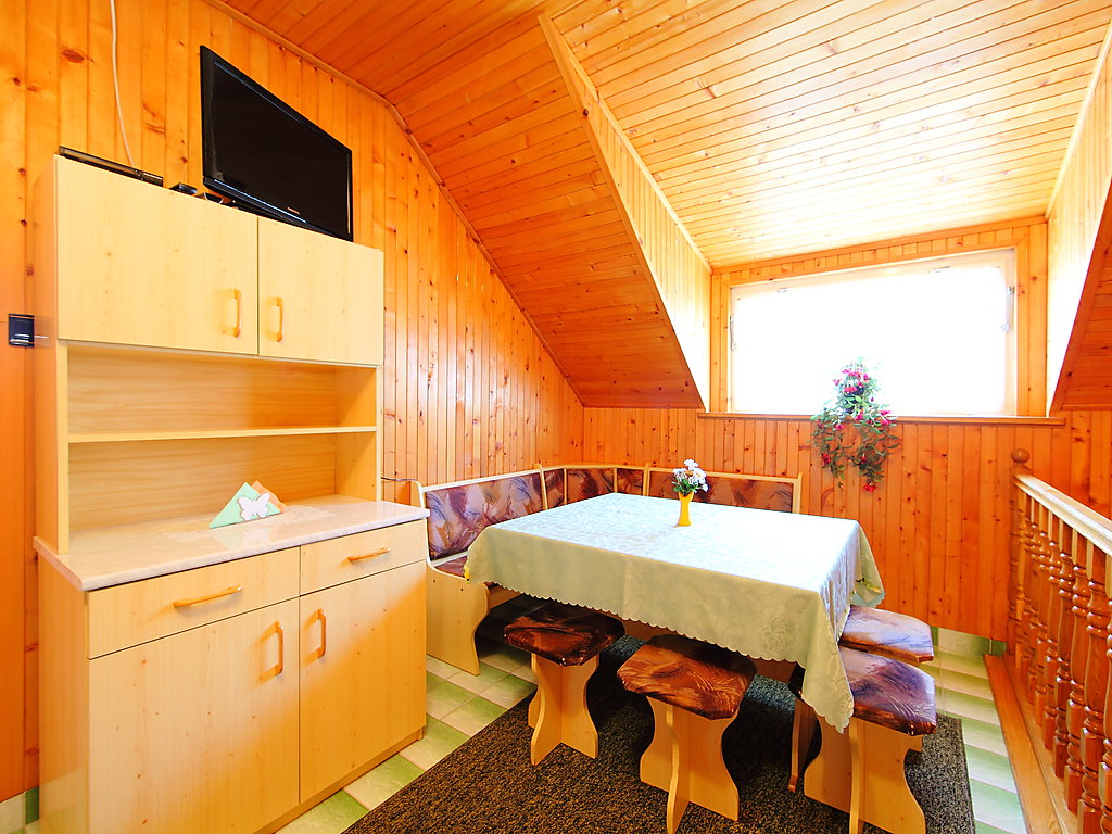 7-Zimmer-Haus 200 m2. Geräumig, gemütlich eingerichtet: Wohn-/Esszimmer mit Sat-TV. Ausgang zur Terrasse. 1 Zimmer mit 1 Bett und 1 franz. Bett (160 cm, Länge 200 cm). 1 Zimmer mit 1 Ausziehbett (2 Pers.). Offene Küche (3 Kochplatten, Backofen, Mikrowelle, Tiefkühler). Bad, sep. WC. Obergeschoss: Eingang mit Esstisch und Sat-TV. 1 Zimmer mit 1 Bett und 1 franz. Bett (160 cm, Länge 200 cm). Ausgang zum Balkon. 3 Zimmer, jedes Zimmer mit 3 Betten. Ausgang zum Balkon. Kleine Küche (4 Kochplatten, Backofen, Geschirrspüler, Mikrowelle). Dusche, Dusche/WC, sep. WC. Balkon 35 m2. Terrassenmöbel, Balkonmöbel, Gartengrill, Liegestühle (2). Sicht auf die Landschaft. Parkplatz (eingezäunt, 3 Autos). MA19017163