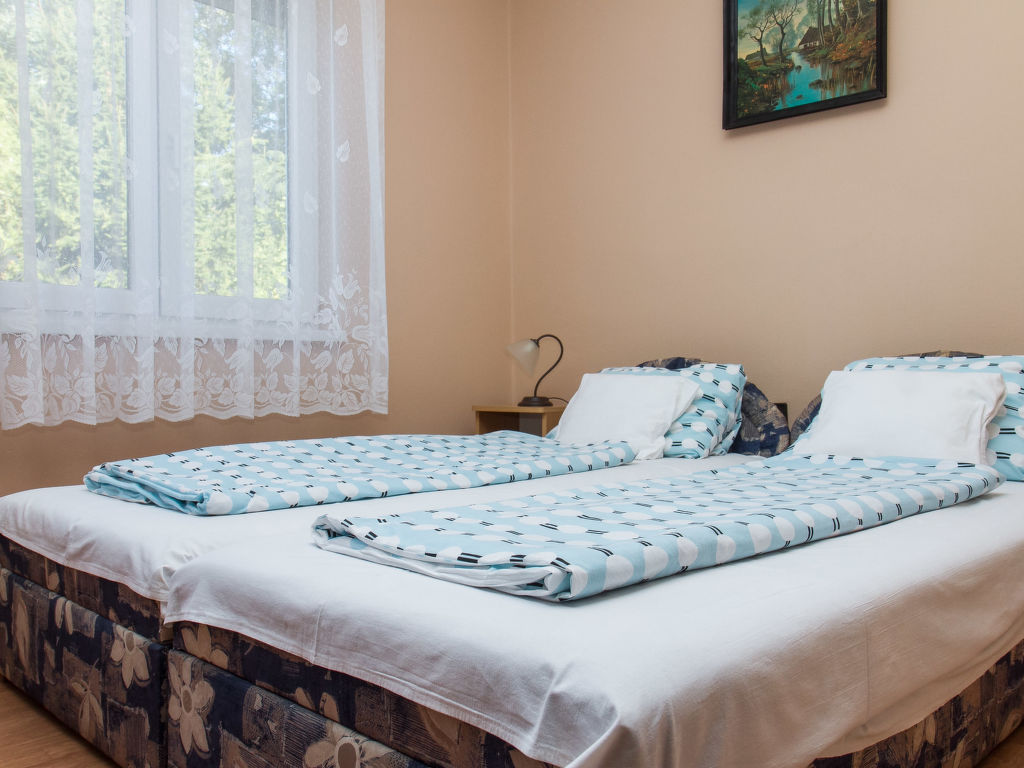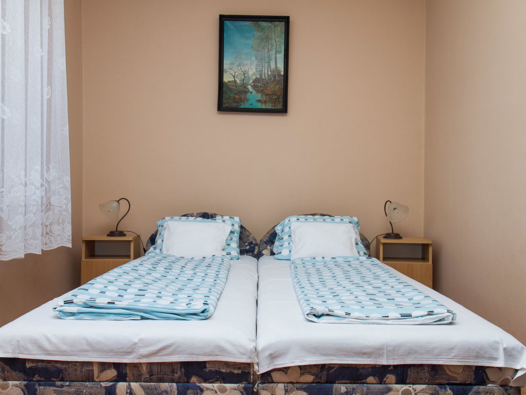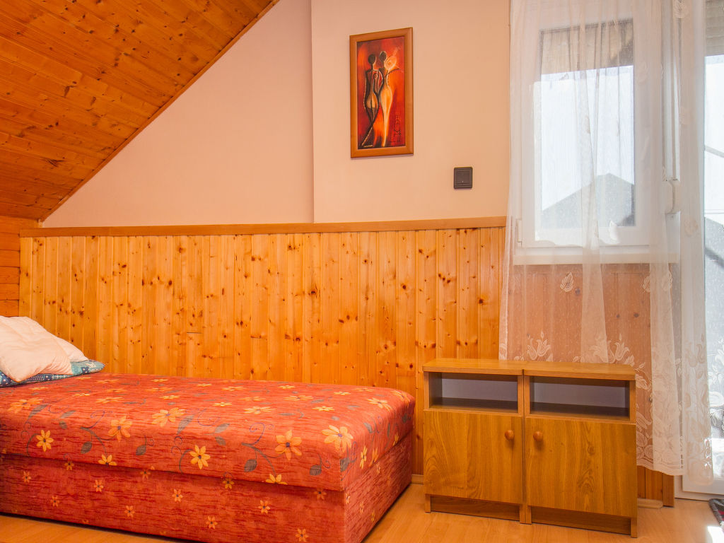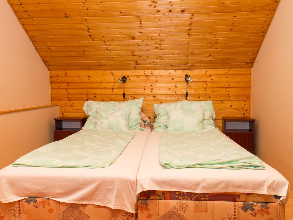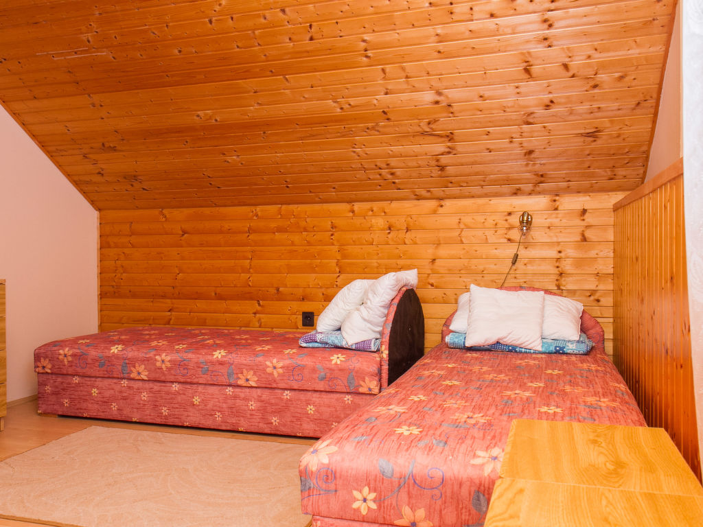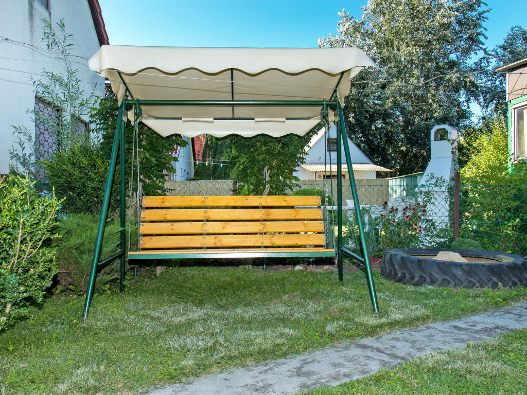 Balatonfenyves: Gemütliches Doppelhaus "Gerle", auf 2 Stockwerken. Im Ort, 150 m vom See. Zur Alleinbenutzung: Grundstück 400 m2, Garten (eingezäunt) mit Rasen, Liegewiese. Lebensmittelgeschäft 400 m, Restaurant, Grasstrand 150 m.