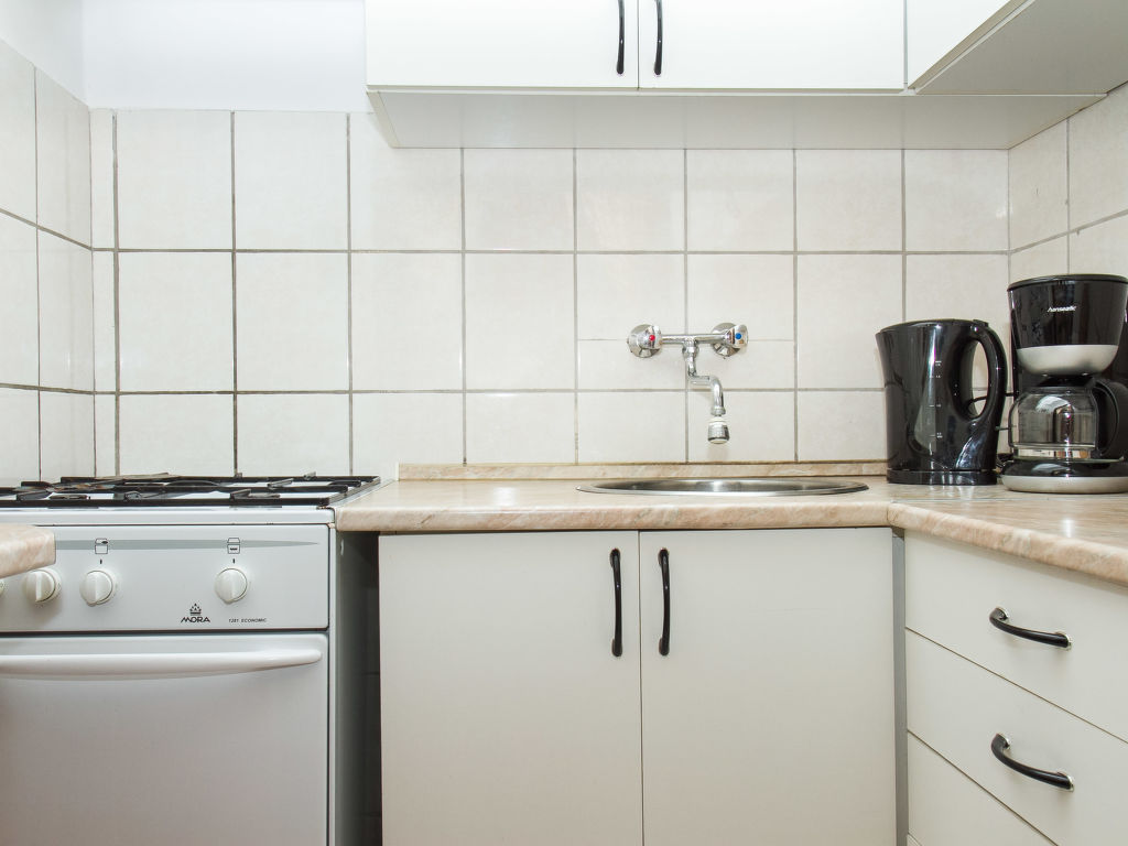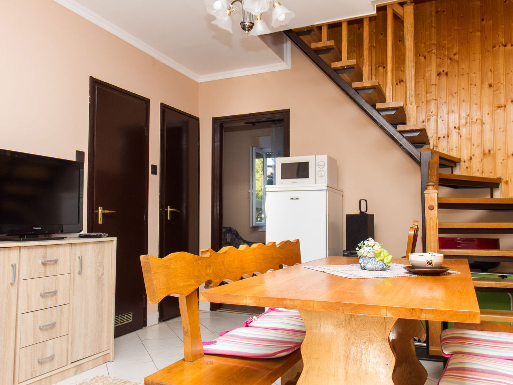 4-Zimmer-Doppelhaushälfte 75 m2. Zweckmässig eingerichtet: Esszimmer mit Sat-TV. Ausgang zur Terrasse. 1 Zimmer mit 2 Betten. Küche (3 Kochplatten, Backofen, Mikrowelle). Dusche/WC. Obergeschoss: 1 Zimmer mit 2 Betten. Ausgang zum Balkon. 1 Zimmer mit 2 Betten. Sep. WC. Terrassenmöbel, Gartengrill (mobil). Parkplatz (eingezäunt, 2 Autos). MA20013187