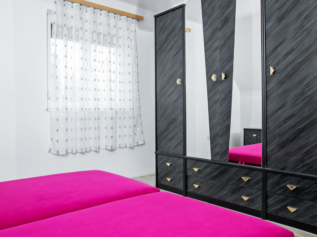 3-Zimmer-Doppelhaushälfte 80 m2. Zweckmässig eingerichtet: Wohn-/Esszimmer mit Sat-TV. Kochnische). Bad/WC. Obergeschoss: Eingang. 1 Zimmer mit 3 Betten. Ausgang zum Balkon. 1 Zimmer mit 2 Betten. Sep. WC. Terrassenmöbel, Balkonmöbel, Gartengrill (mobil). Parkplatz (eingezäunt). MA19010178