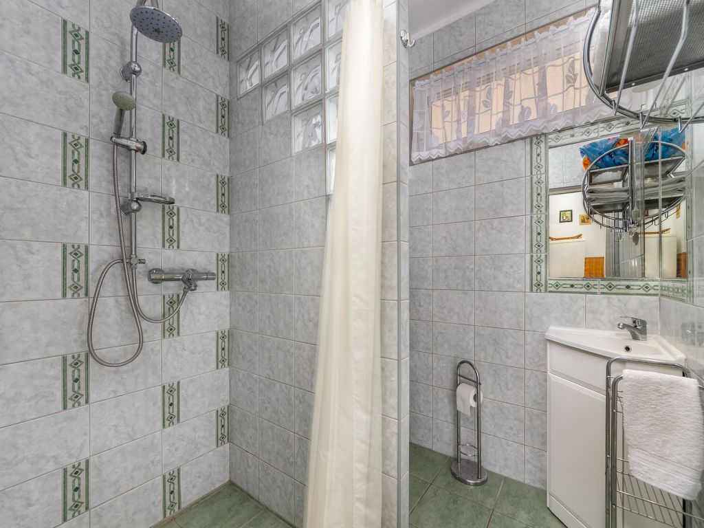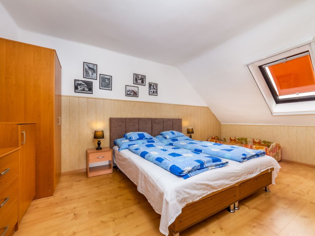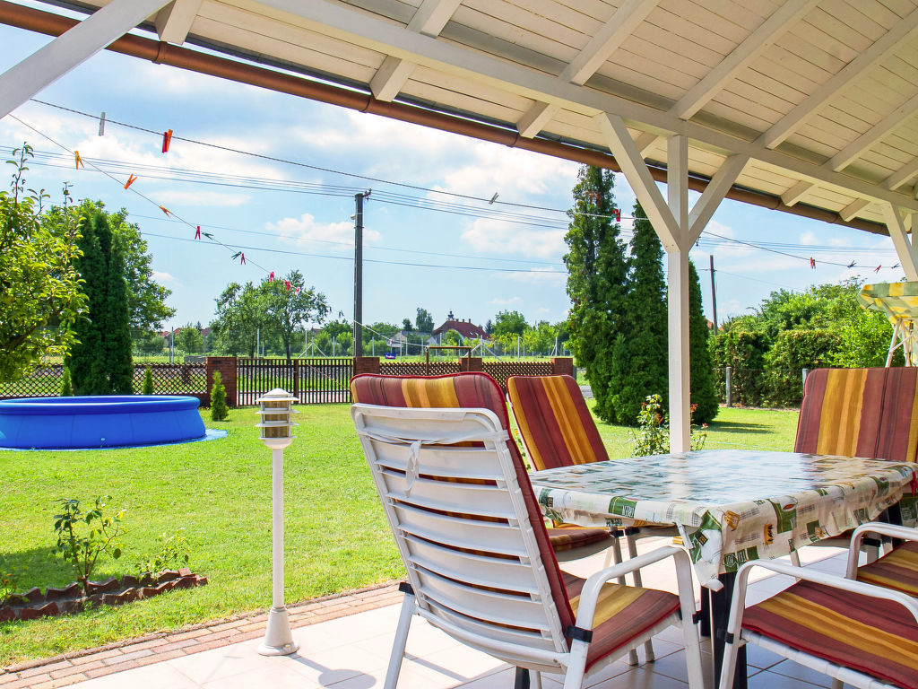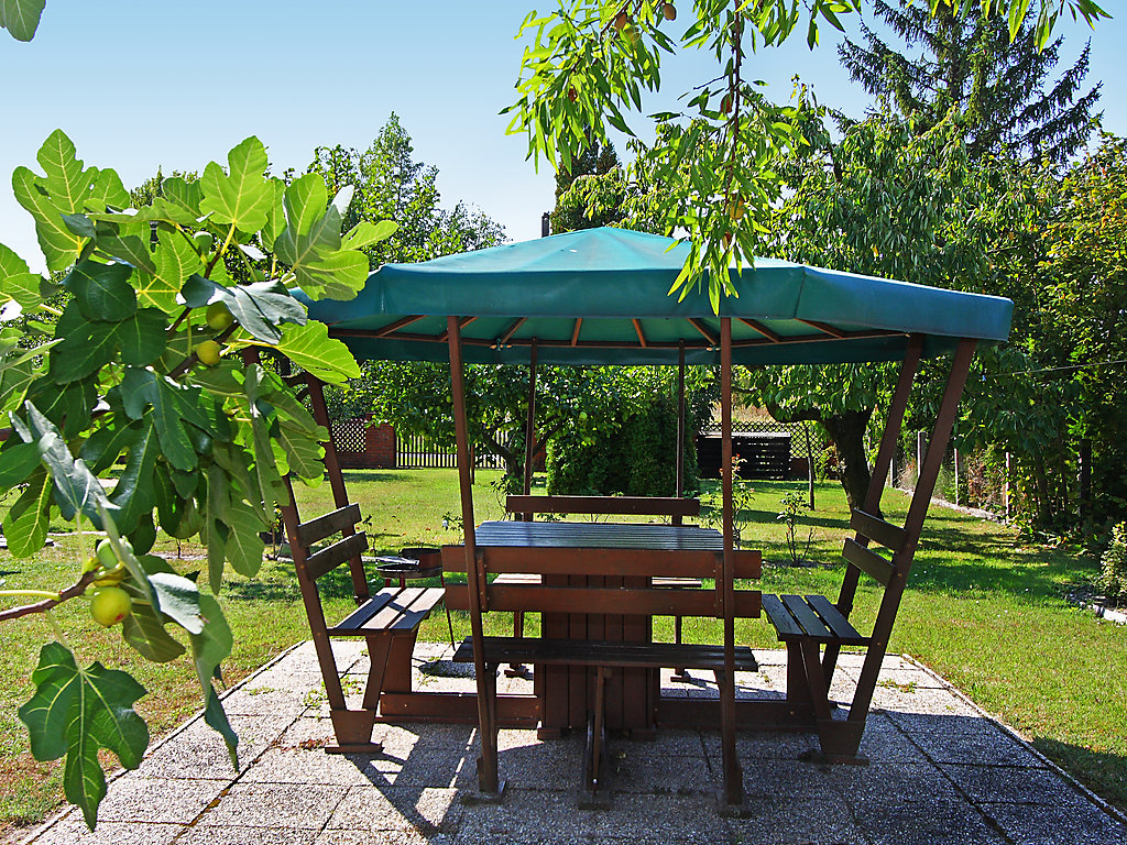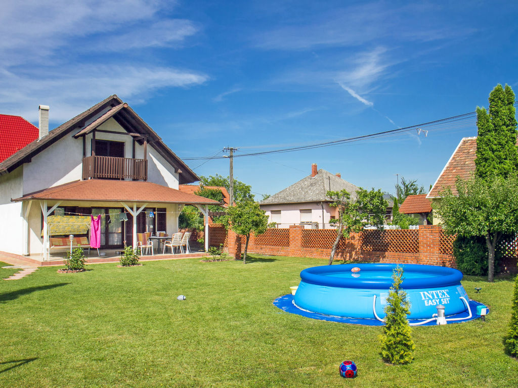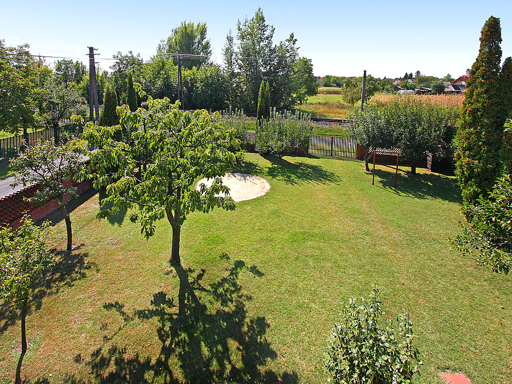 Balatonkeresztúr: Grosses Haus "Grand Jardin", auf 2 Stockwerken. Sonnige Lage, 500 m vom See. Zur Alleinbenutzung: grosser, schöner Garten 700 m2 (eingezäunt) mit Rasen und Bäumen, Aufstellpool rund (4 m Durchmesser, 90 cm tief, 15.05.-15.09.). (Schaukel). Lebensmittelgeschäft, Restaurant 300 m, Freibad 500 m.