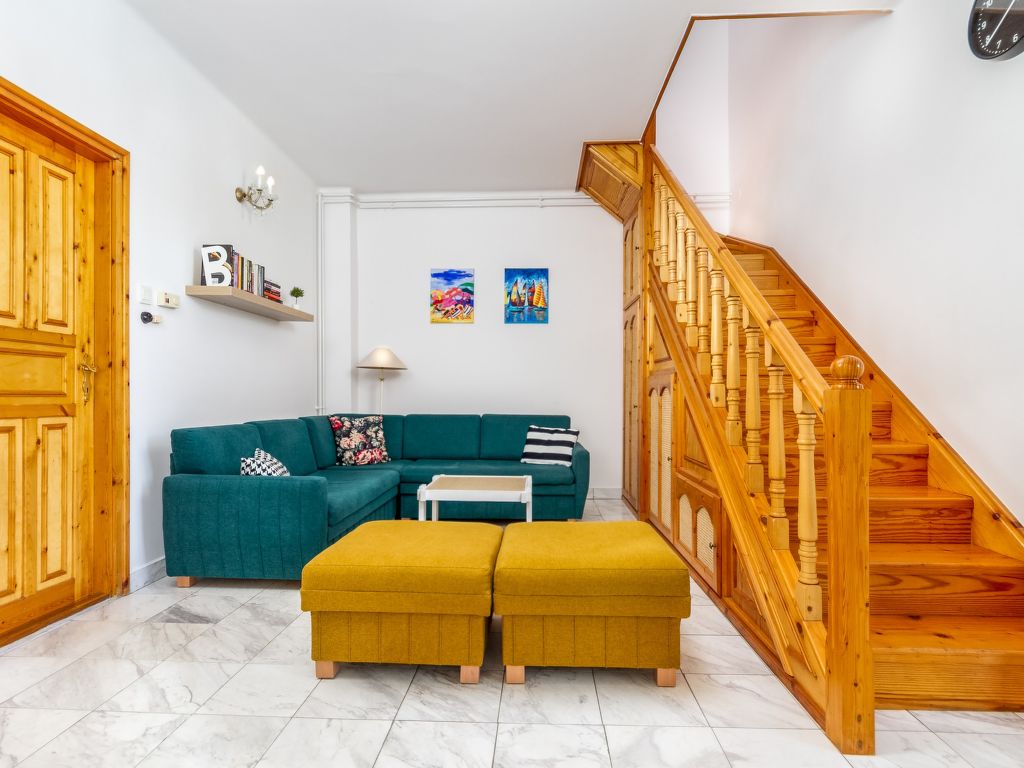 5-Zimmer-Doppelhaushälfte 100 m2. Komfortabel eingerichtet: Wohnzimmer mit Essecke, Sat-TV und Klimaanlage. Ausgang zur Terrasse. 1 Zimmer mit 1 franz. Bett. Offene Küche (3 Kochplatten, Backofen). Bad, sep. WC. Obergeschoss: 2 Zimmer, jedes Zimmer mit 1 franz. Bett. 1 Zimmer mit 2 Betten (2 Pers.). Eingang mit Klimaanlage. Eingang mit Klimaanlage. Dusche/WC. Terrasse. Terrassenmöbel, Gartengrill. Parkplatz (eingezäunt, 2 Autos). MA19006615