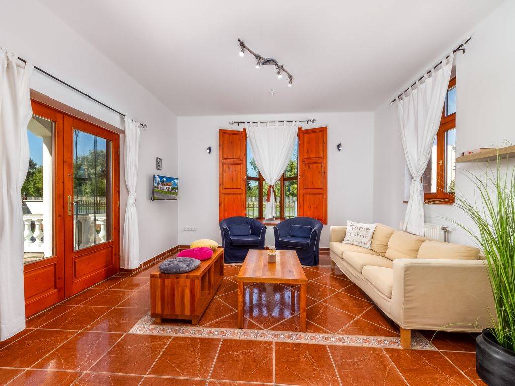 5-Zimmer-Doppelhaushälfte 100 m2. Teilweise abgeschrägt, komfortabel und geschmackvoll eingerichtet: Wohnzimmer mit Essecke, Sat-TV und Klimaanlage. Ausgang zur Terrasse. 1 Zimmer mit 2 Betten. Offene Küche (3 Kochplatten, Backofen, Mikrowelle). Dusche/WC. Obergeschoss: 2 Zimmer, jedes Zimmer mit 2 Betten. 1 Zimmer mit 1 franz. Bett. Eingang mit Klimaanlage. Bad/WC. Balkon, Terrasse. Terrassenmöbel, Balkonmöbel, Gartengrill. Parkplatz (eingezäunt, 2 Autos). MA19006646