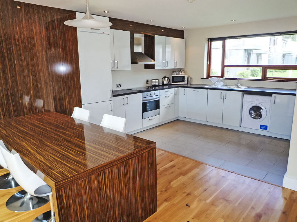"Castlemartyr Holiday Lodge", 3-Zimmer-Haus. Geräumig, modern und luxuriös eingerichtet: Wohn-/Esszimmer mit TV und DVD. Küche (4 Kochplatten, Backofen, Geschirrspüler, Tiefkühler). Sep. WC. Obergeschoss: 1 Doppelzimmer mit 1 Doppelbett und Dusche/WC. 1 Zimmer mit 2 Betten und Dusche/WC. Zur Verfügung: Waschmaschine. Bitte beachten: 2 Haustiere/Hunde erlaubt. TV nur EN.