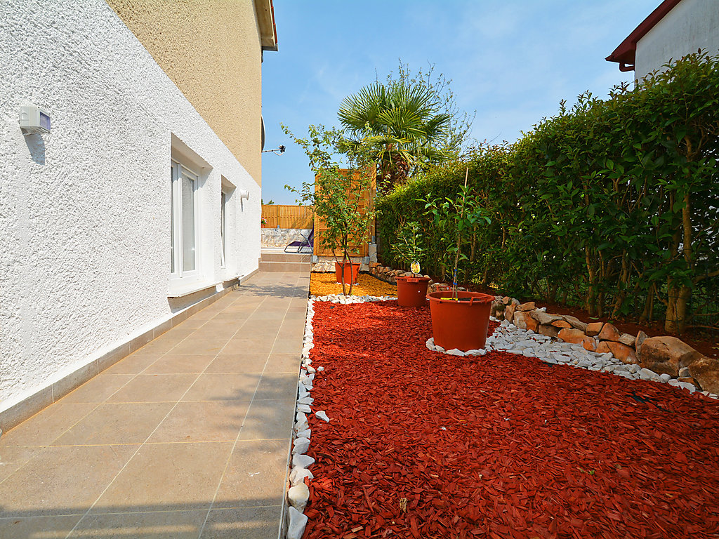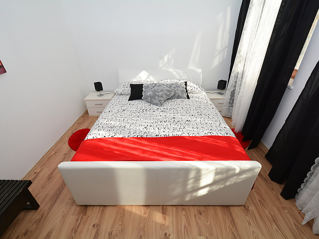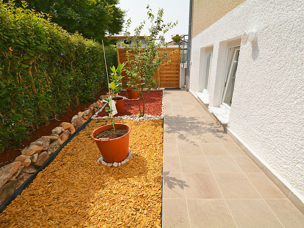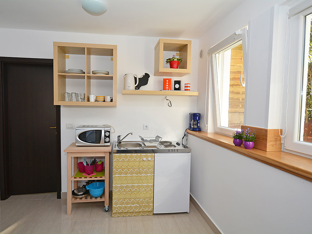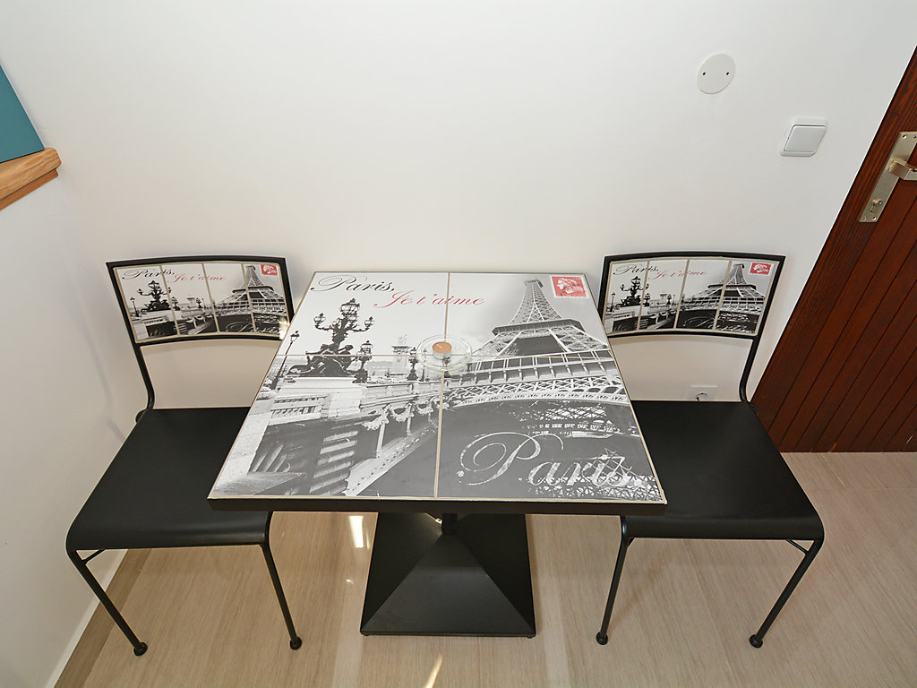2-Zimmer-Wohnung 31 m2, im Erdgeschoss. Wohn-/Esszimmer mit 1 Doppeldiwanbett und Sat-TV (Flachbildschirm), Klimaanlage. 1 Zimmer mit 1 franz. Bett (160 cm, Länge 200 cm). Ausgang zur Terrasse, zum Schwimmbad. Offene Küche (4 Kochplatten, Backofen, Mikrowelle, Tiefkühler, elektrische Kaffeemaschine). Dusche/WC. Terrasse 4 m2. Terrassenmöbel. Zur Verfügung: Waschmaschine, Haartrockner. Internet (Wireless LAN, gratis). 1 kleines Haustier/Hund erlaubt.